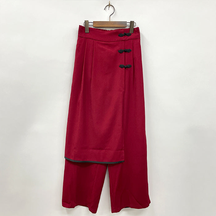 スカートを重ねたようなレイヤードデザインのワイドパンツ