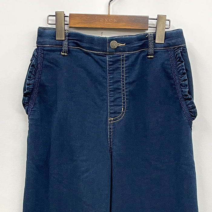 ポケットの部分にあしらわれたフリルがワンポイントで、トップスを選ばず合わせられるシンプルなデザイン♪