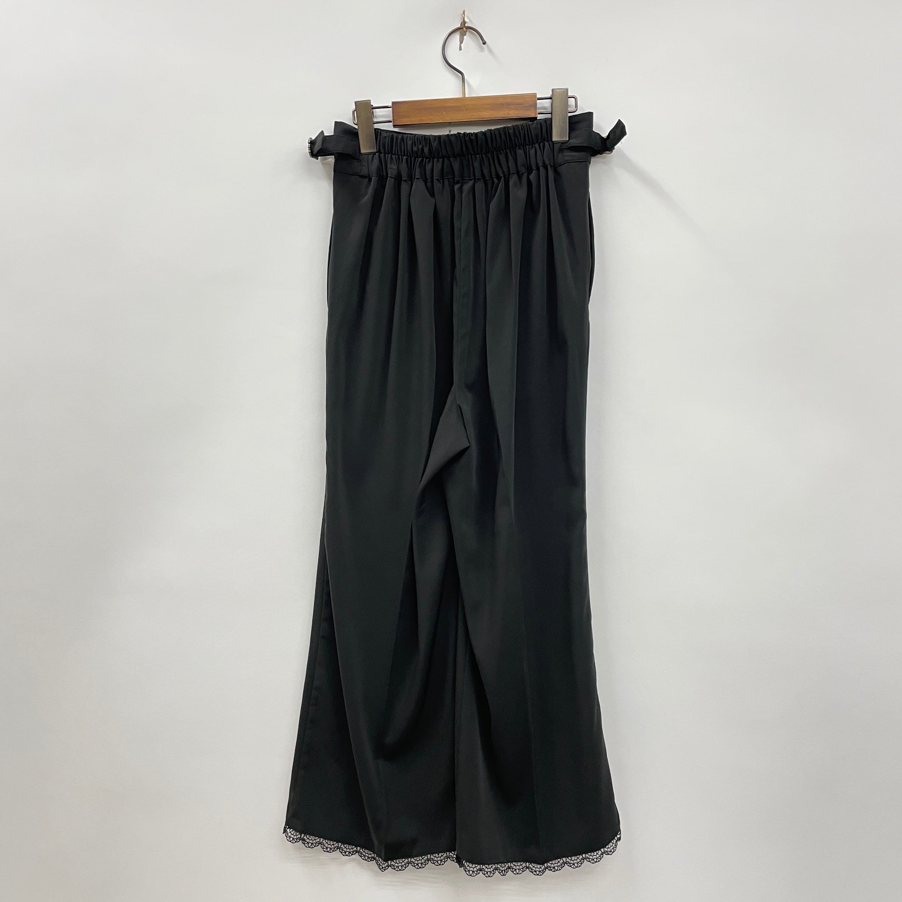 硬すぎない落ち感のある生地を使用しているため、履き心地◎、ウエストは後ゴム仕様なので、履きやすさも◎です。