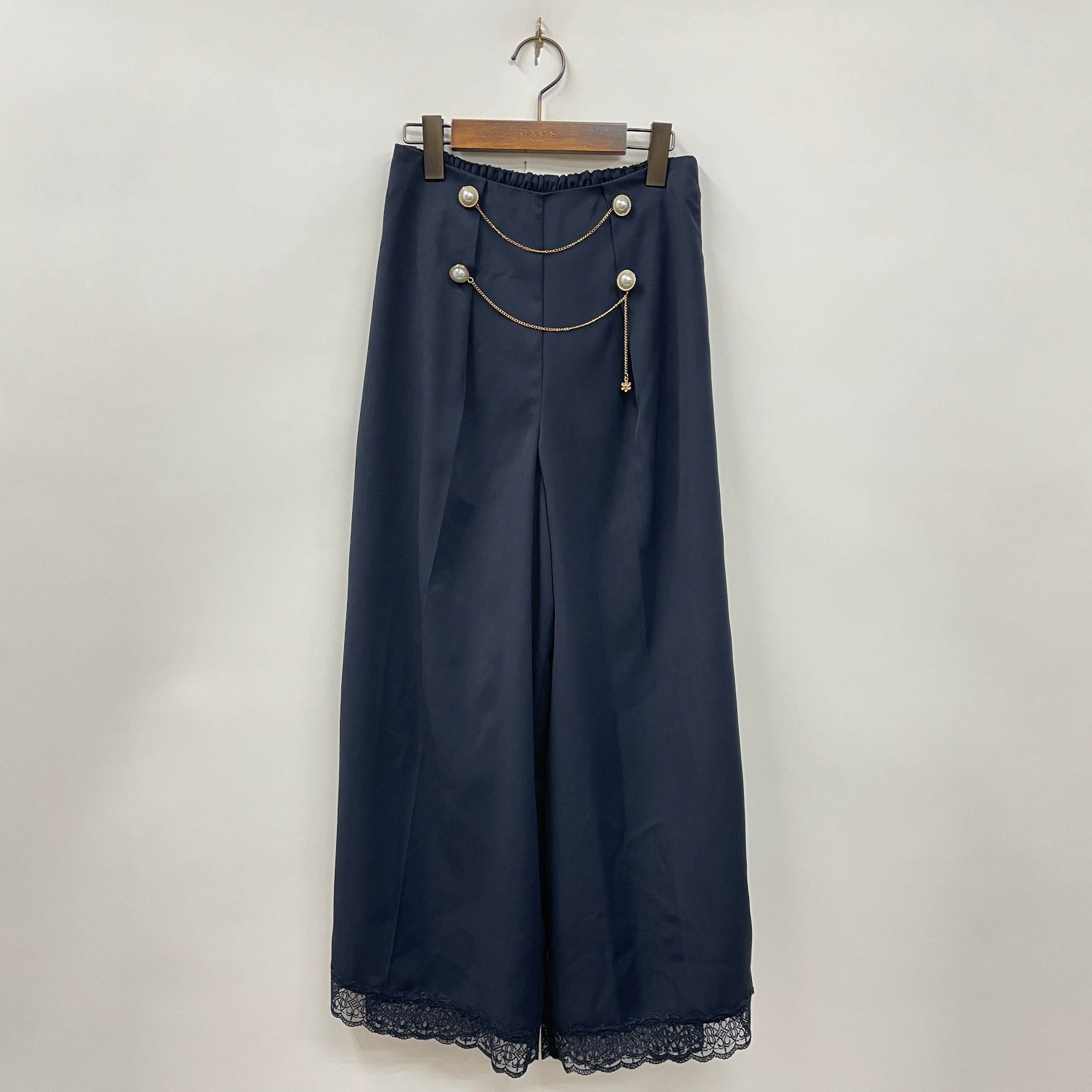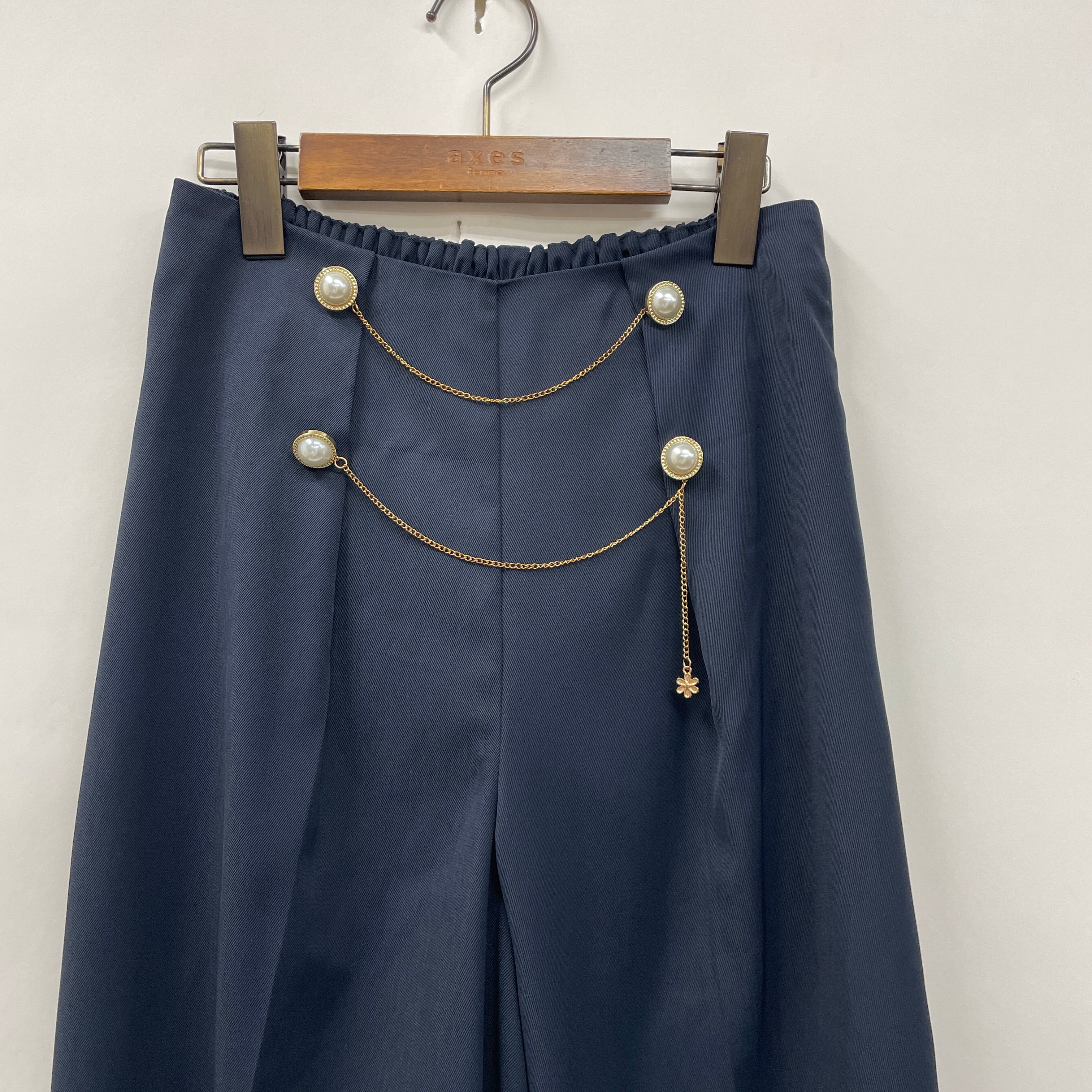 チェーン使いがポイントのカラーワイドパンツ。