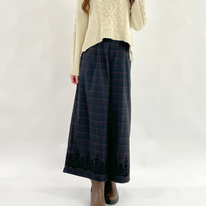 裾のフロッキープリントがaxes femmeらしいワイドパンツです。起毛のかかった、温かみのある素材を使用しています。チェック柄なのでニット合わせのスタイリングがオススメです。