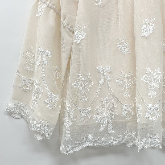 リボンモチーフを落とし込んだオリジナルの刺繍を施したチュールレースが華やかなアイテムです♪