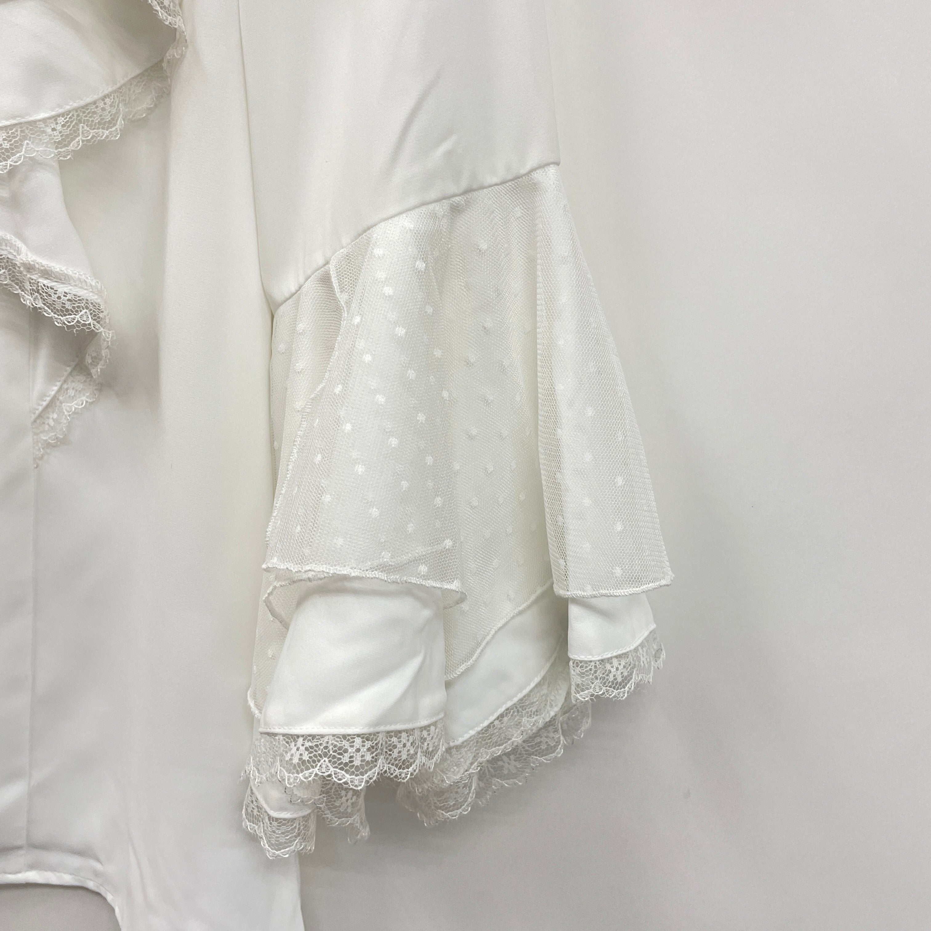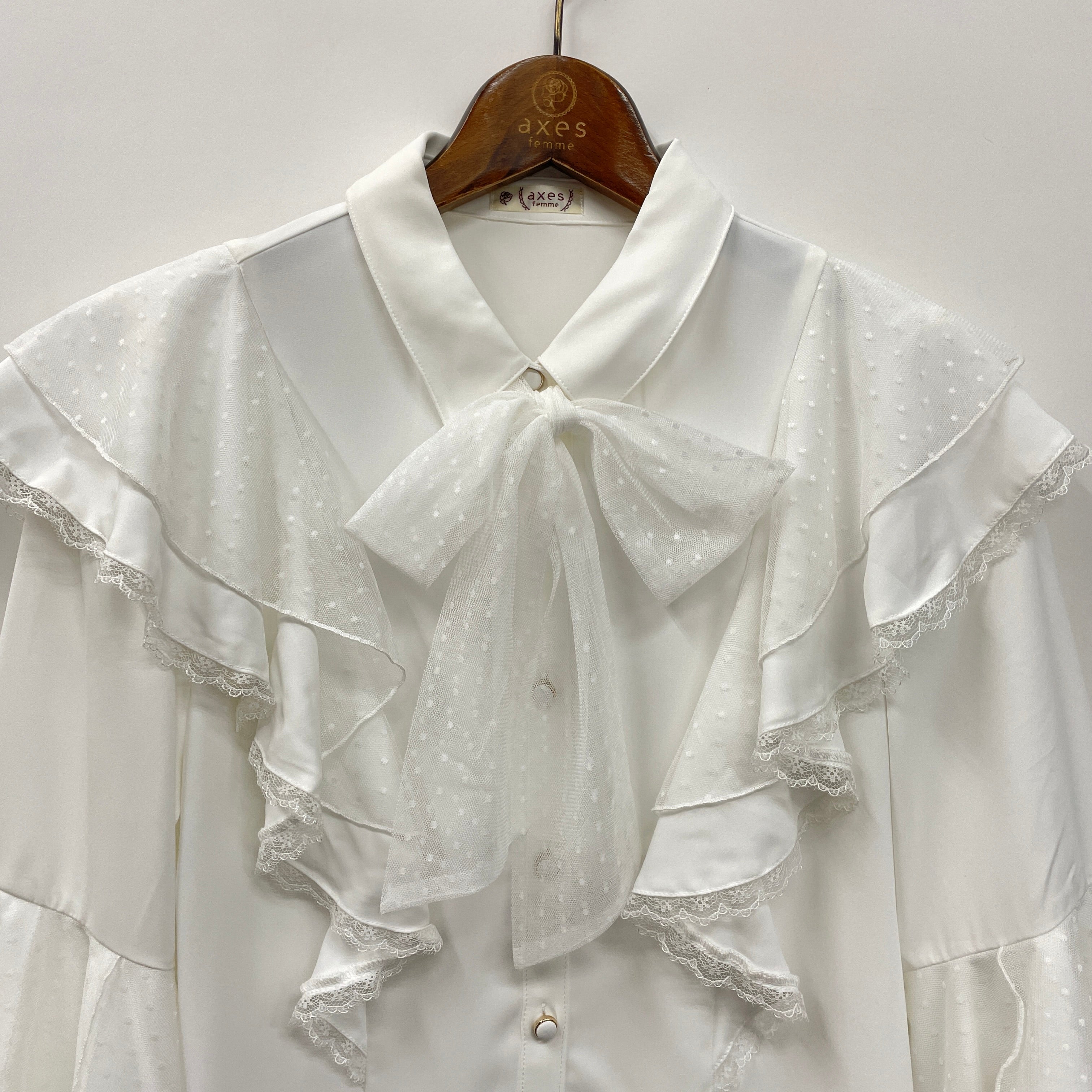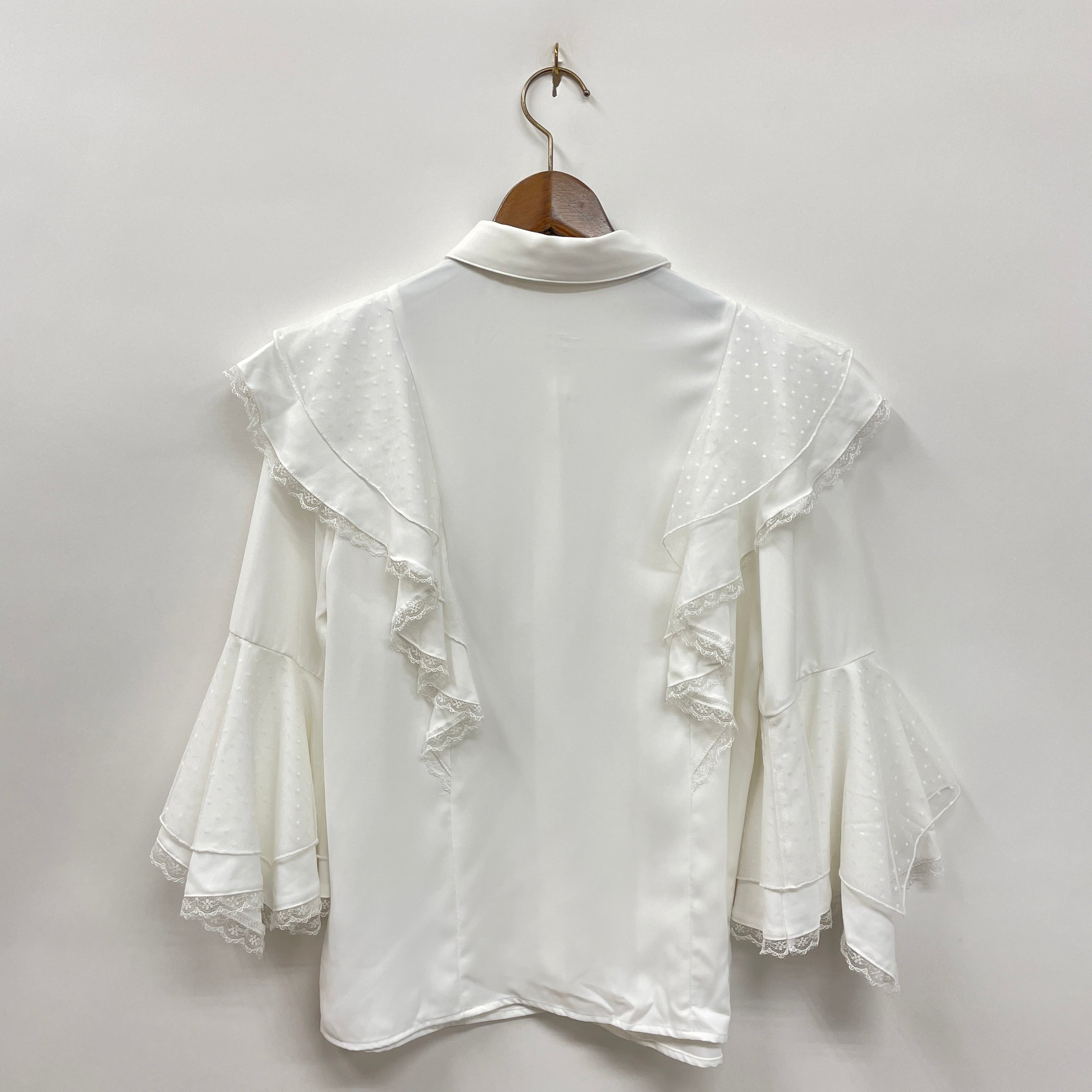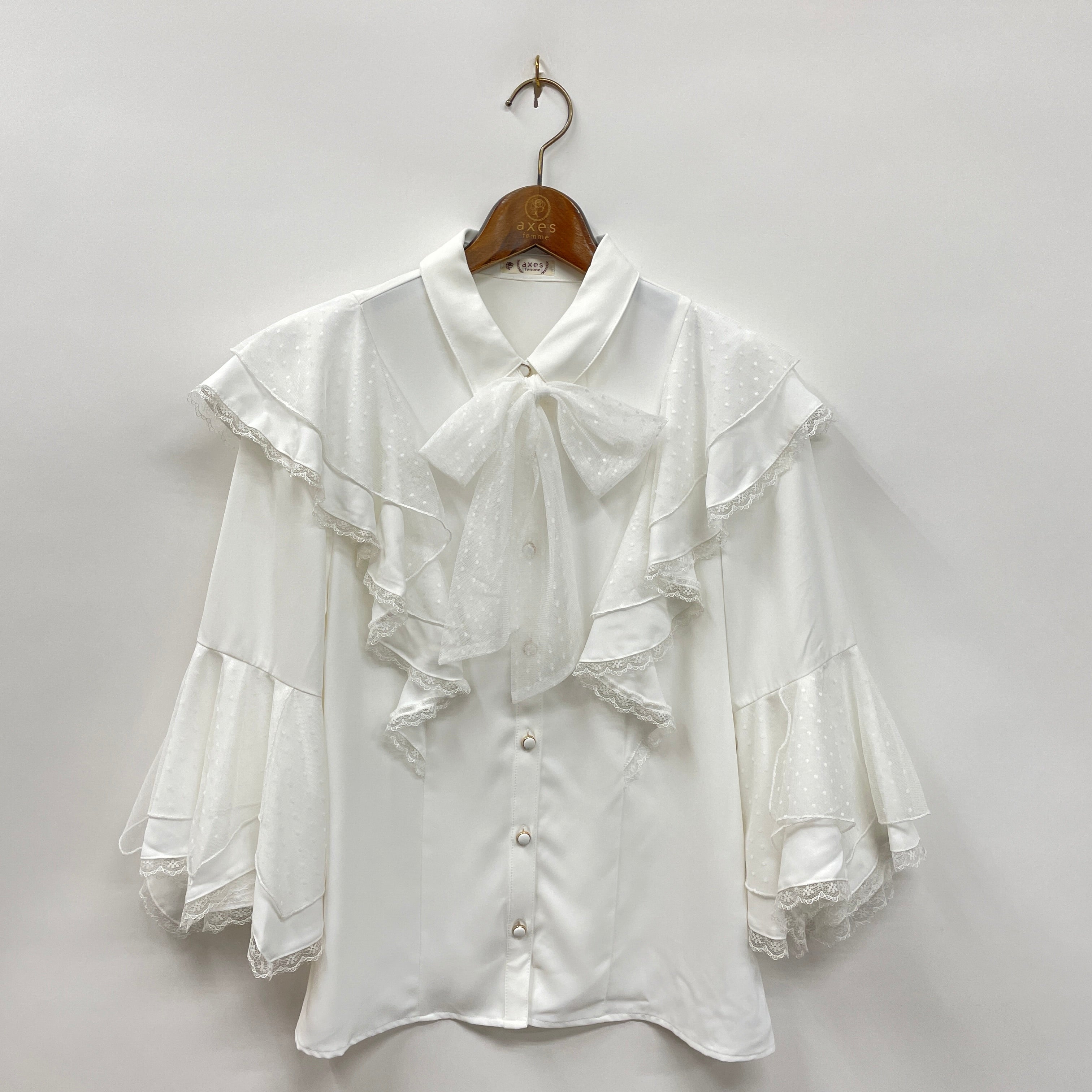 ドットチュールのかさなりがフェミニンな姫袖ブラウスです。