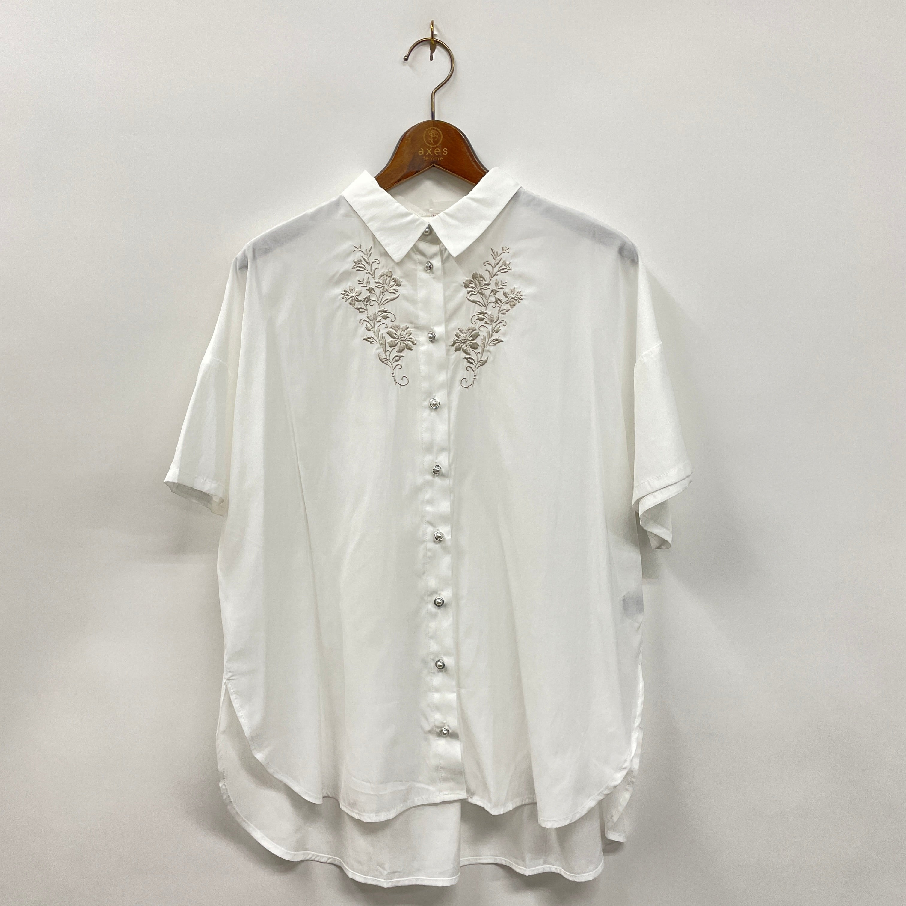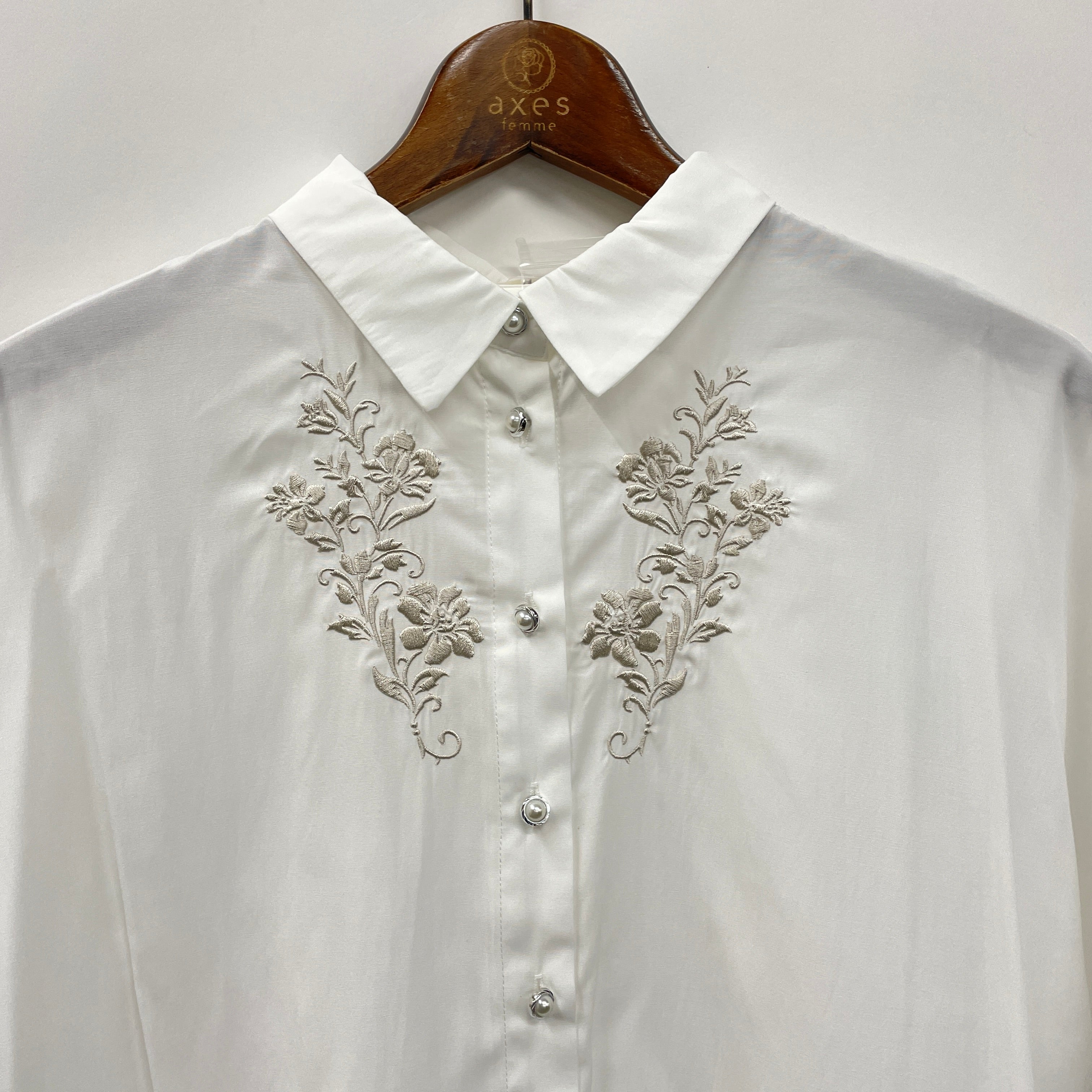 クラシカルなフラワー刺繍がポイントのシャツです。