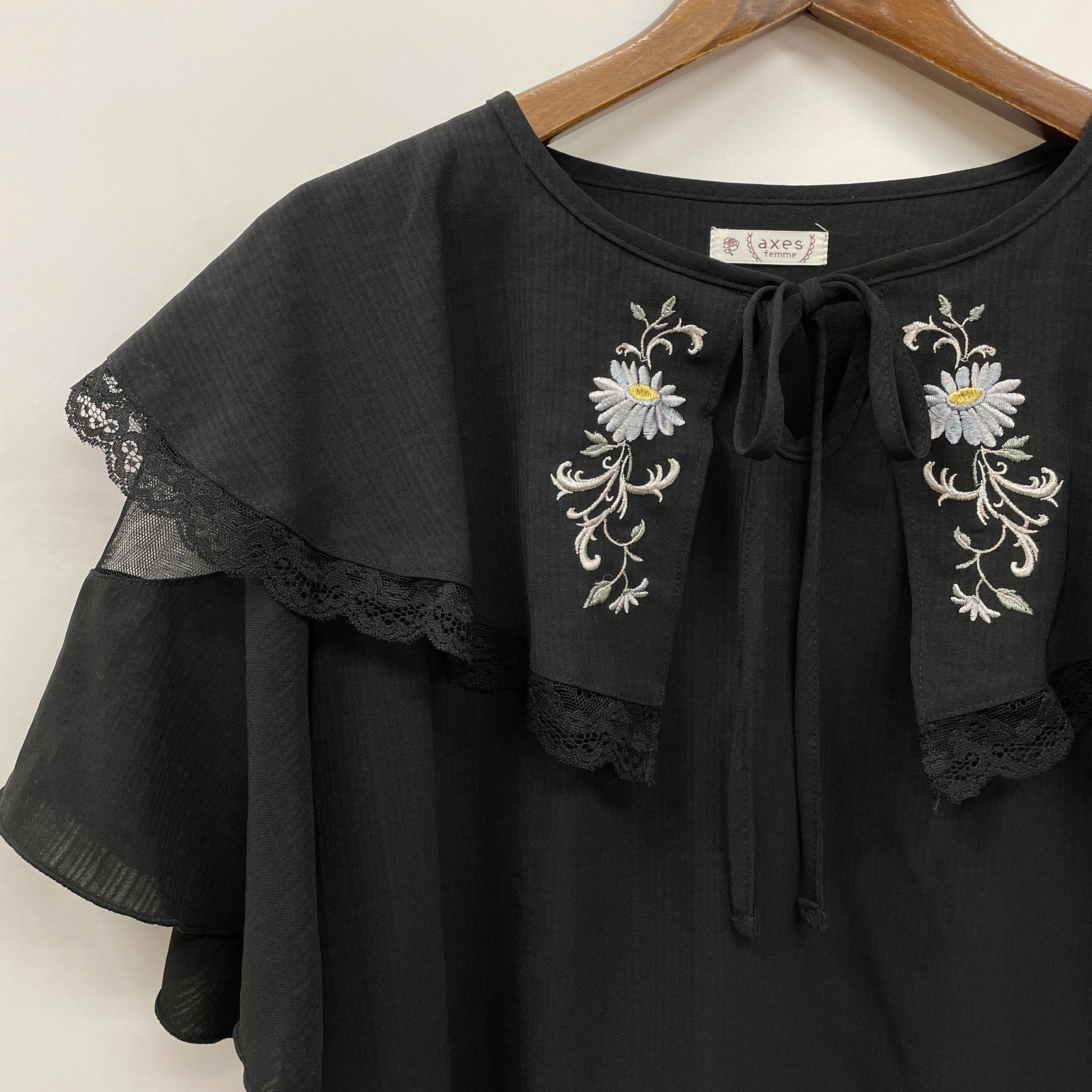 刺繍入ケープブラウス