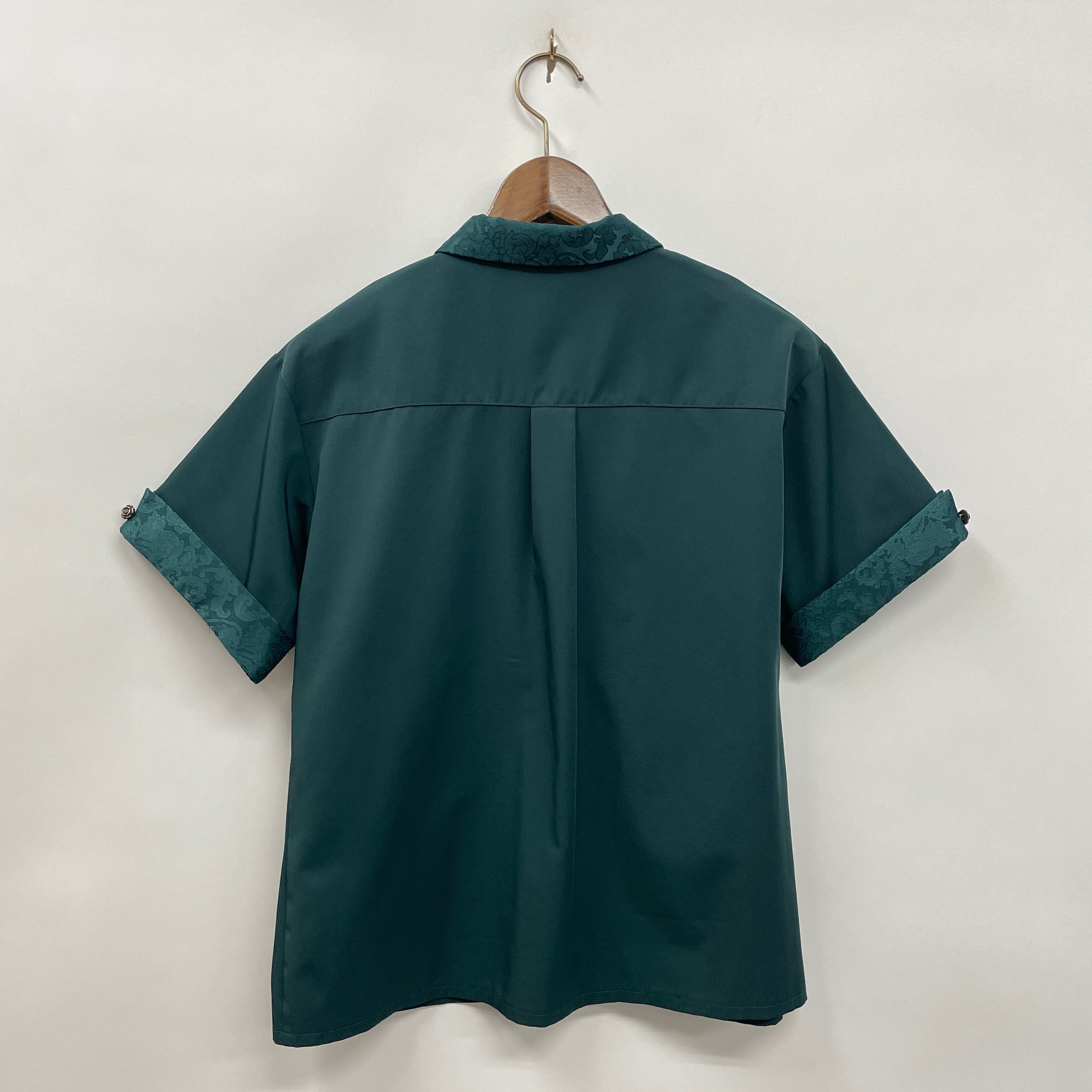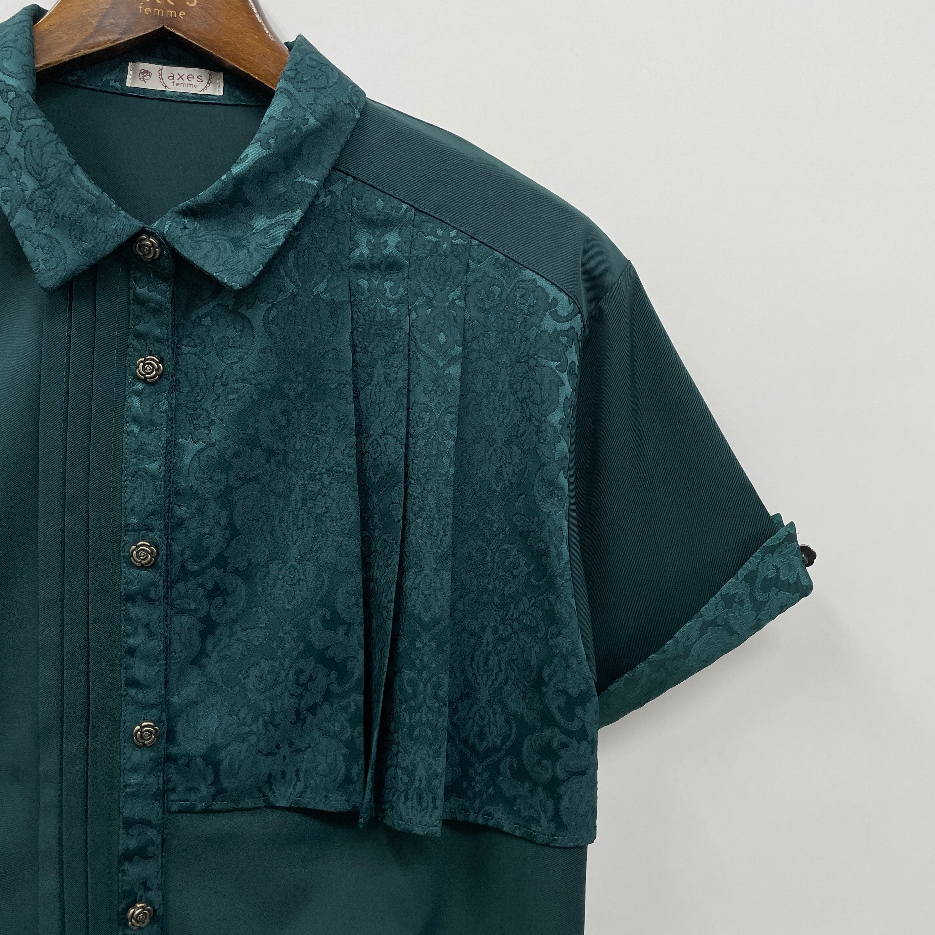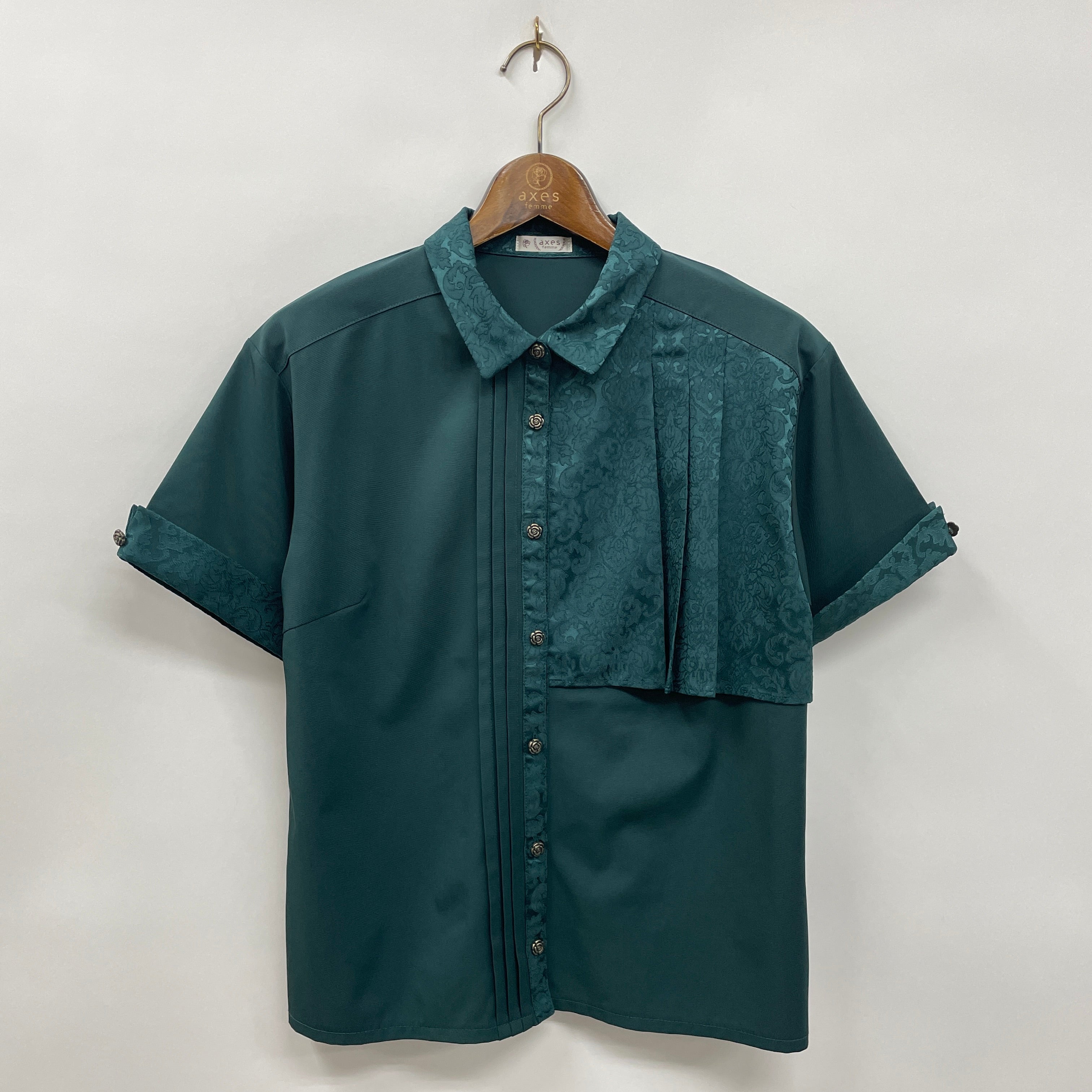 セットアップ風に着こなせるジャカード切り替えのシャツ。
