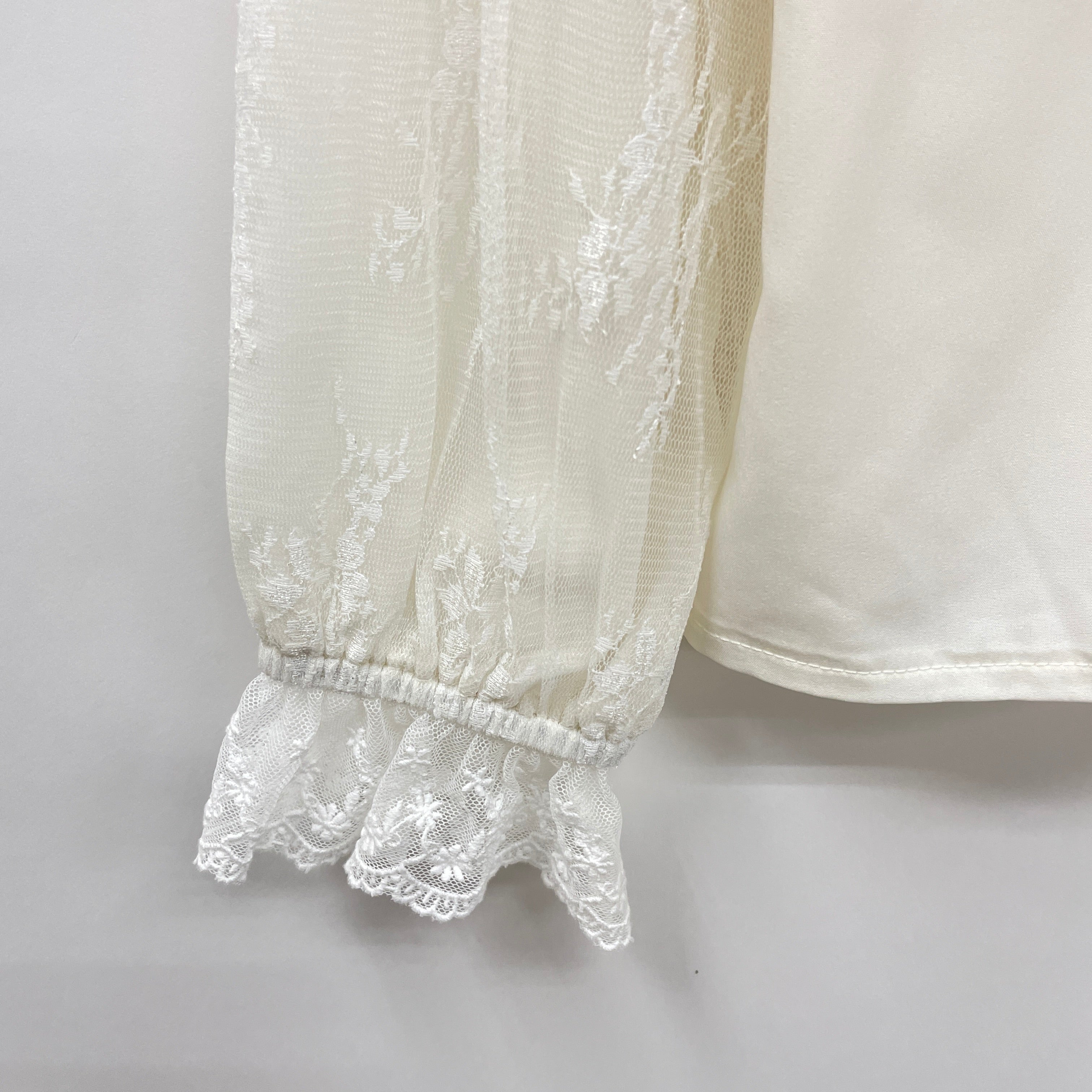 フリルはもちろん袖にもレース生地を使用した華やかさ満点な1枚です。