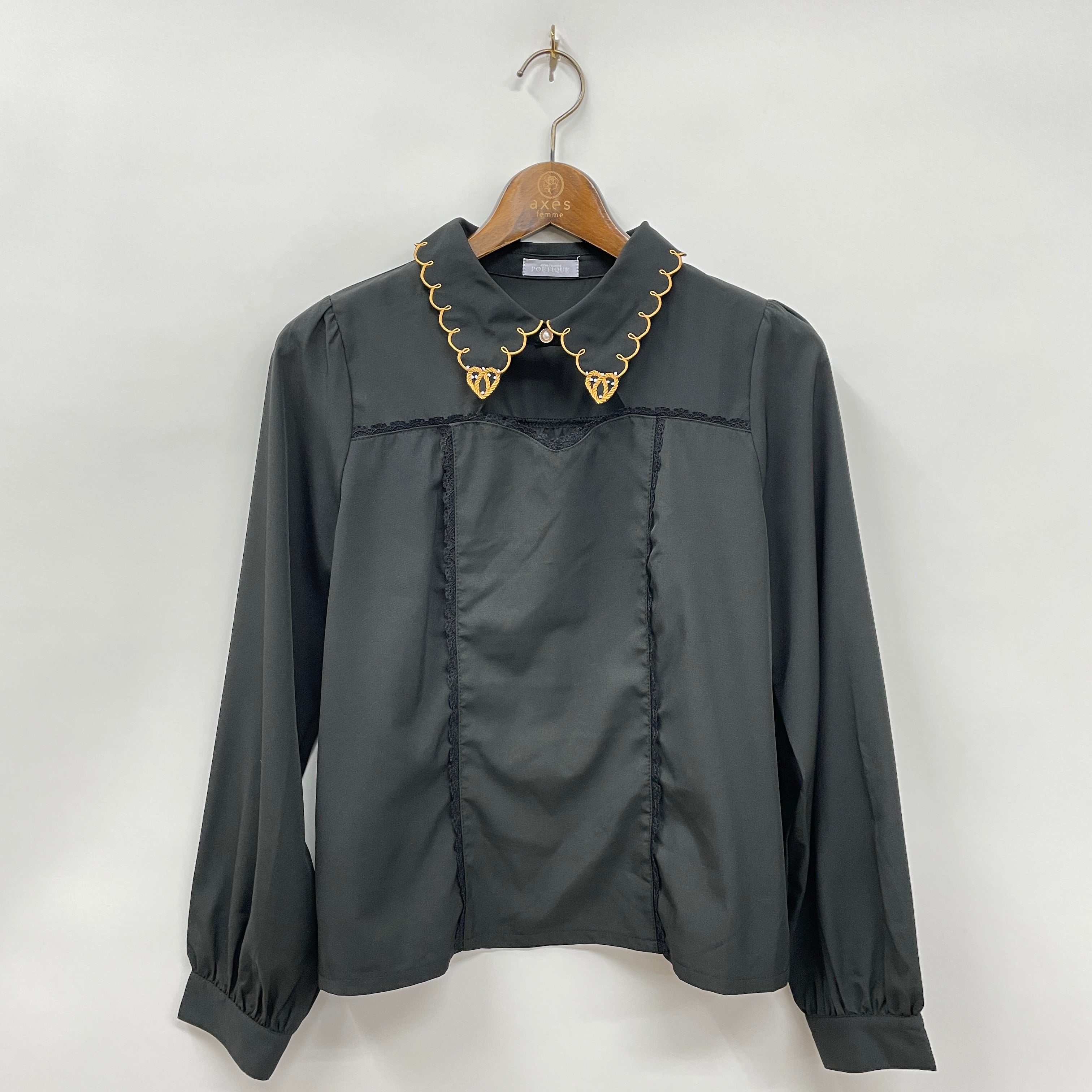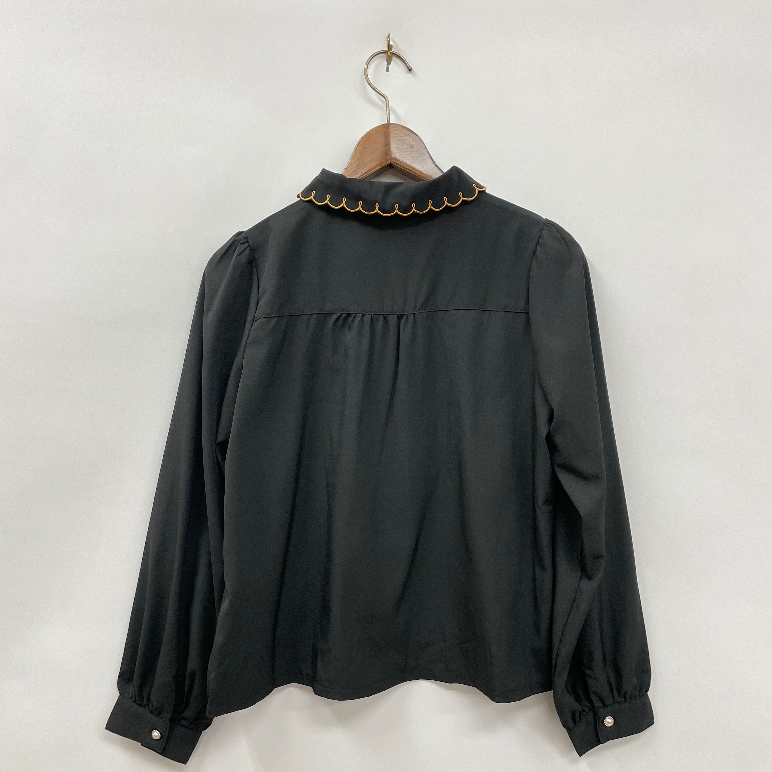 オクトーバーフェストでも振る舞われるドイツの伝統的な焼き菓子パンであるプレッツェルを襟元に刺繍であしらったブラウスです。