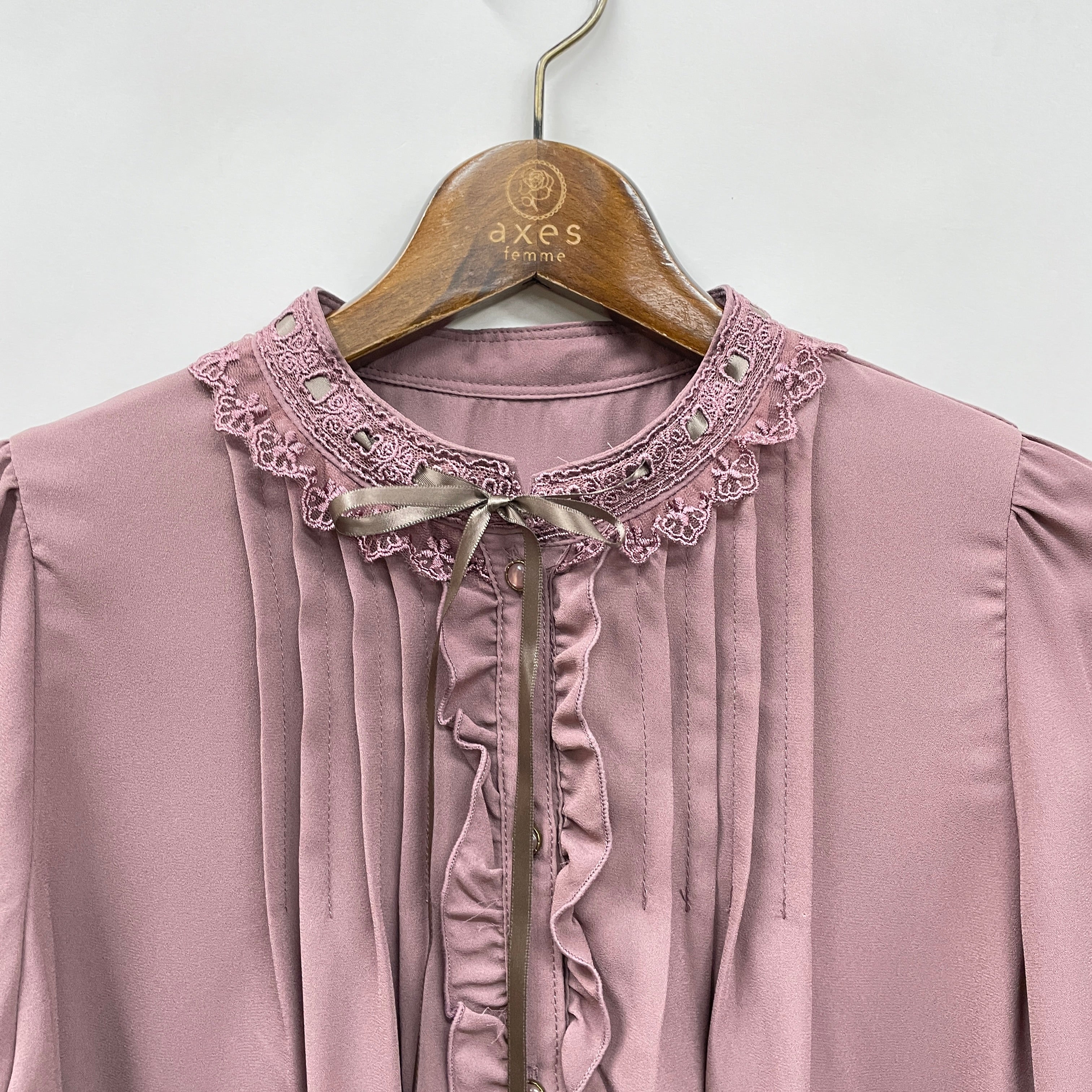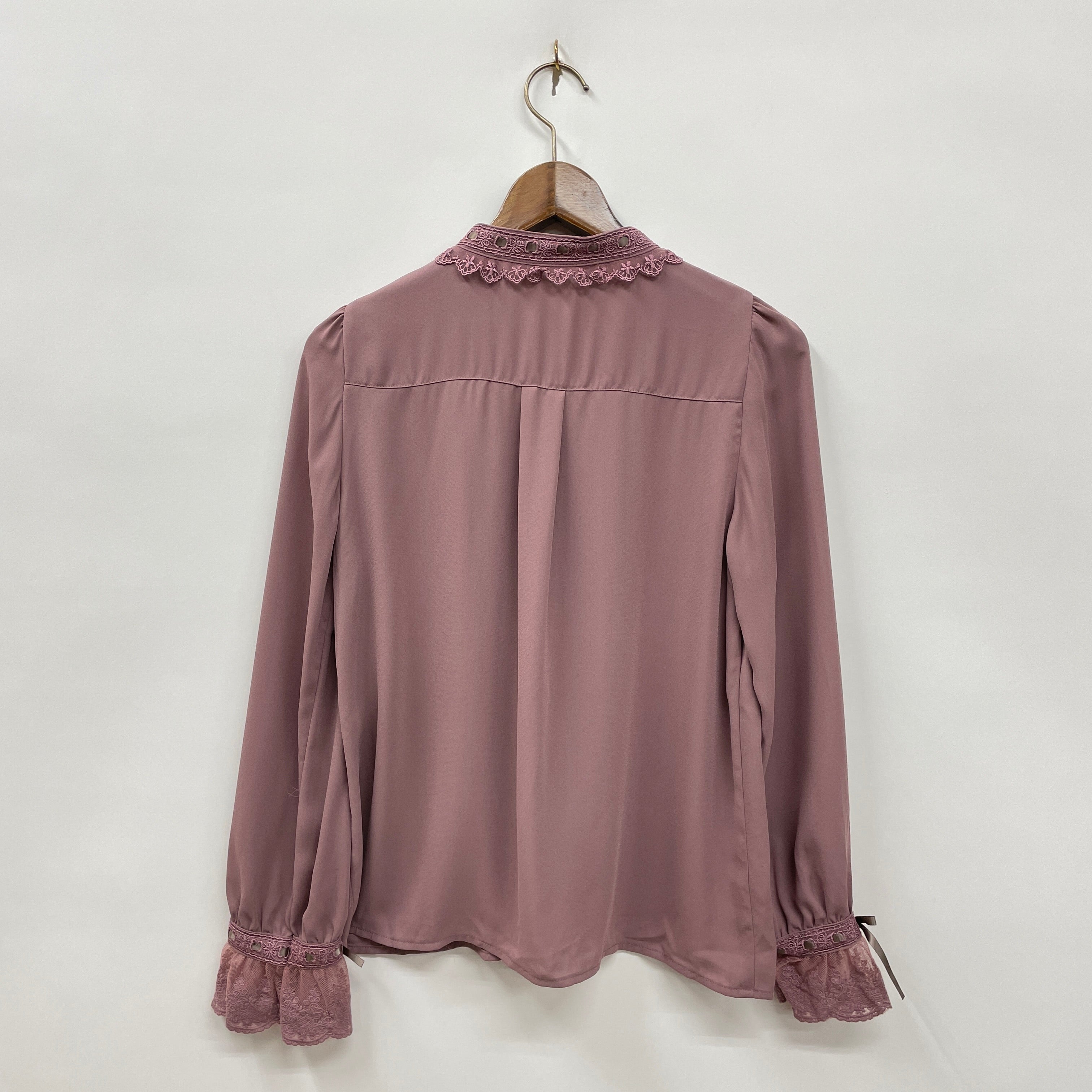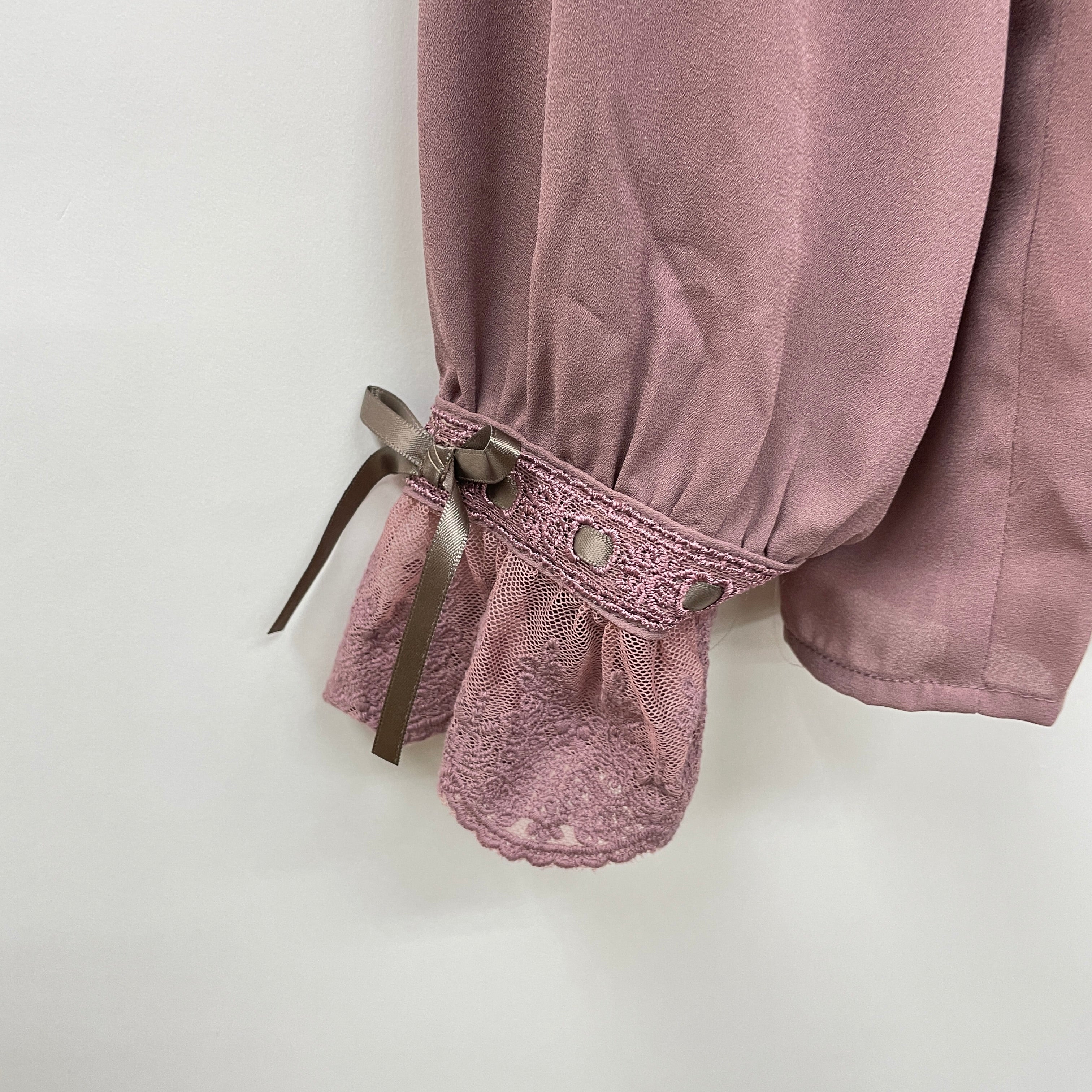 リボン×はしごレースデザインがポイントのブラウスです。