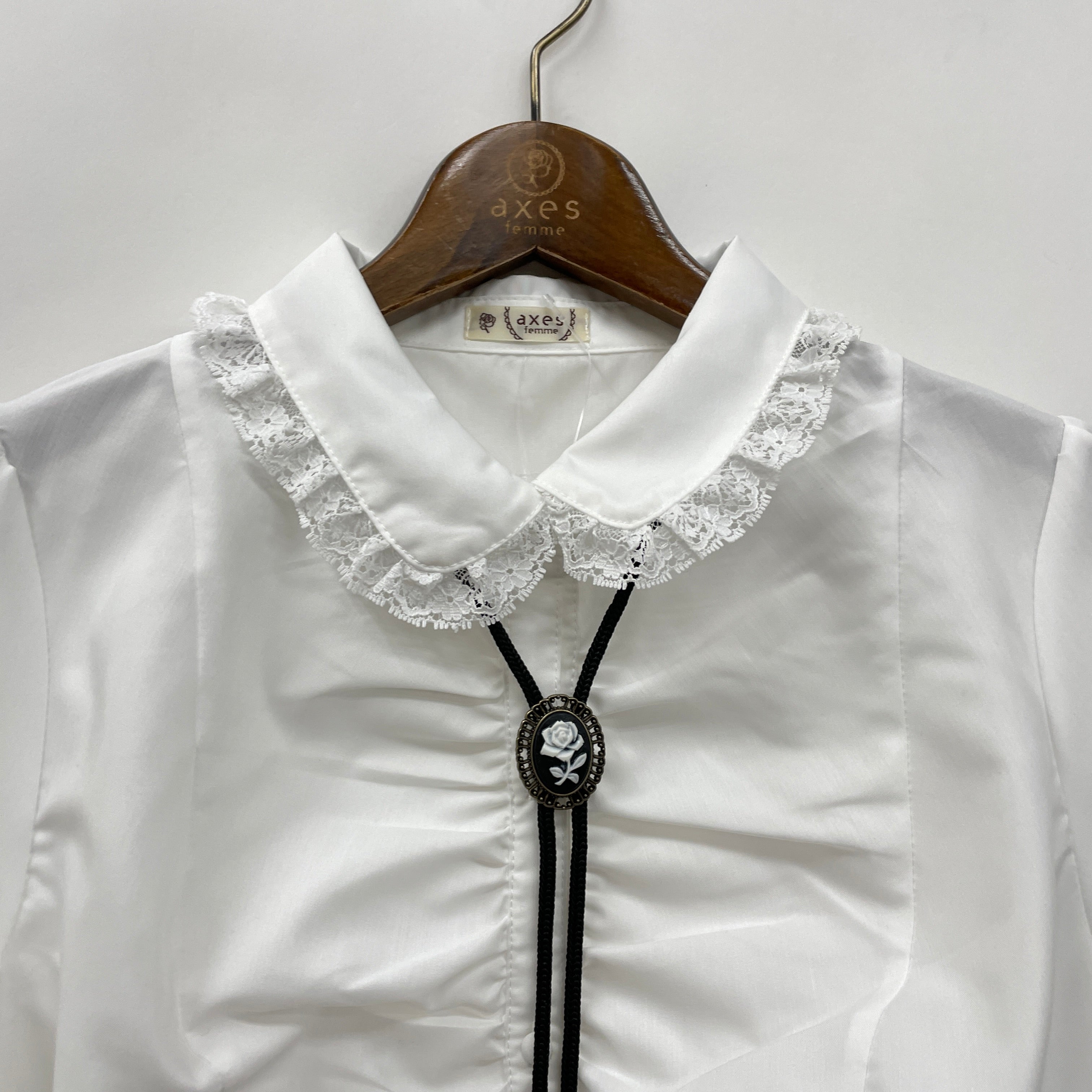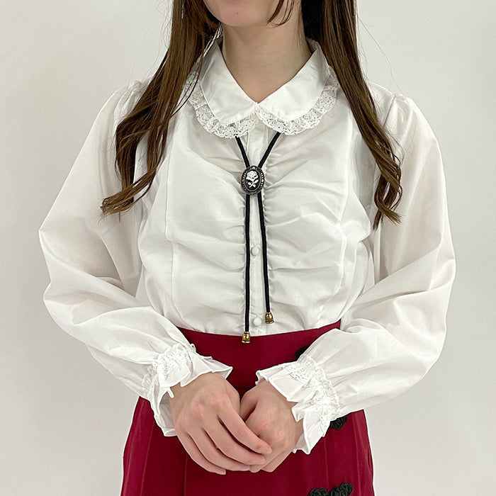 カメオがポイントのループタイがセットになったクラシカルなブラウス