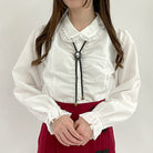 ネックレス感覚で付けられるループタイと、ギャザーのシルエットがクラシカルなブラウスがセットになったアイテム。
