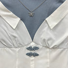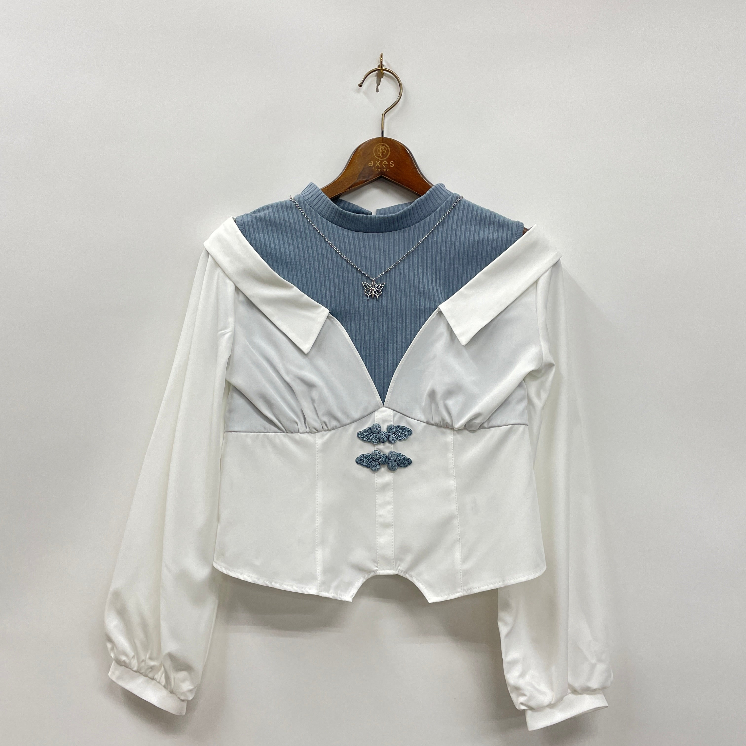 アジアンノットボタンと蝶のネックレス風チャームでオリエンタルな雰囲気に仕上げました。
