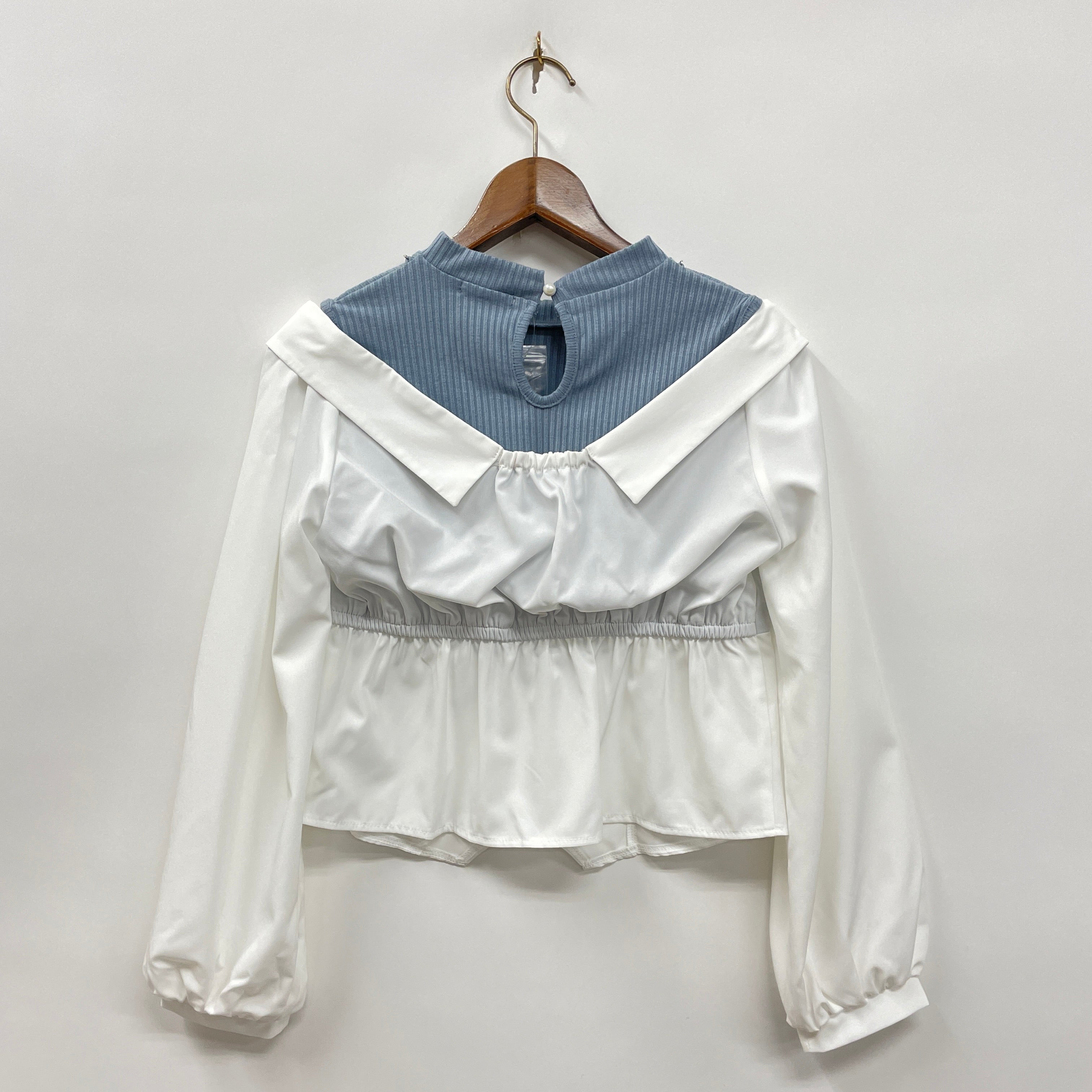 カットソートップスとシャツを重ね着しているかの様なデザインがポイントです。