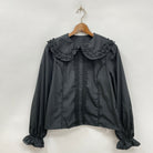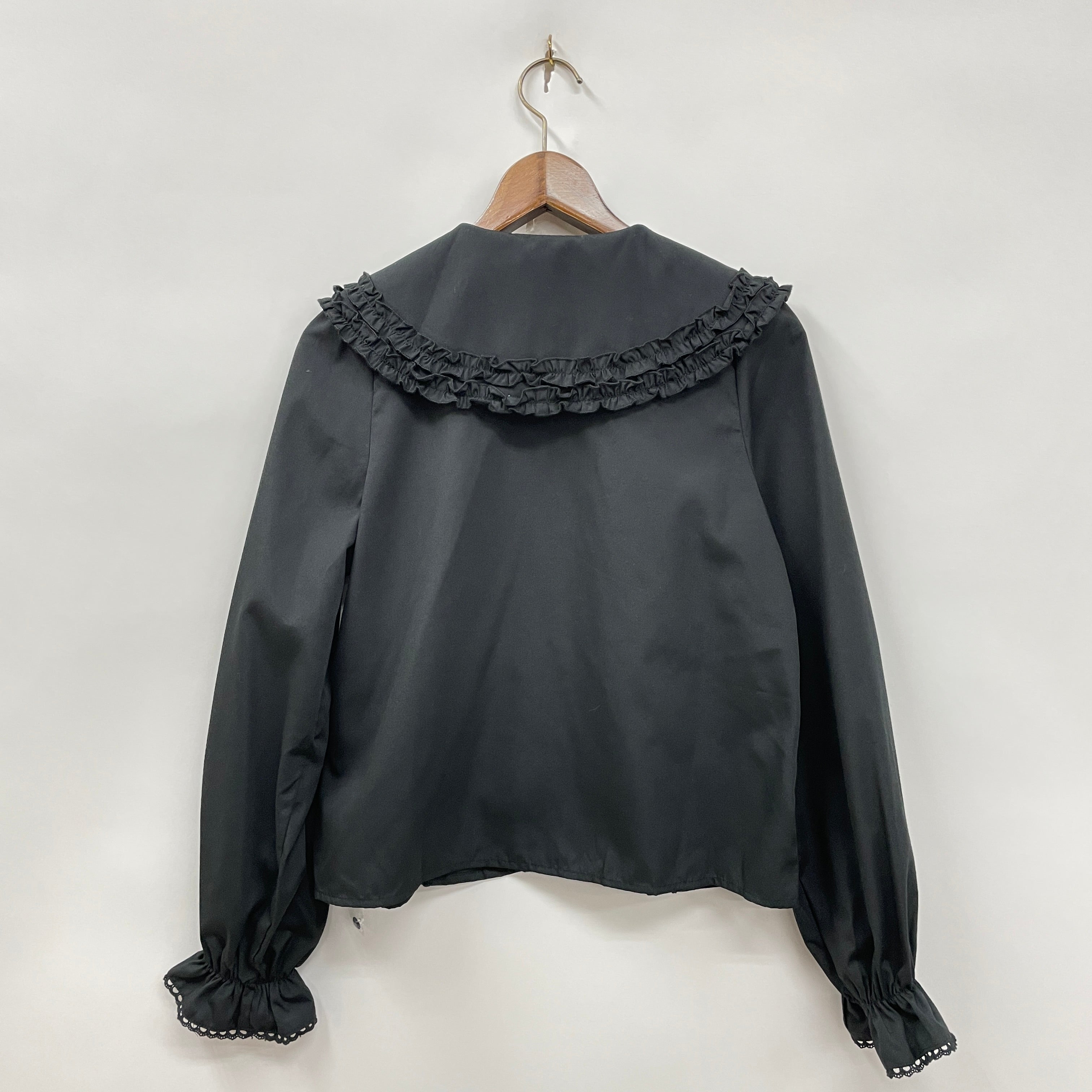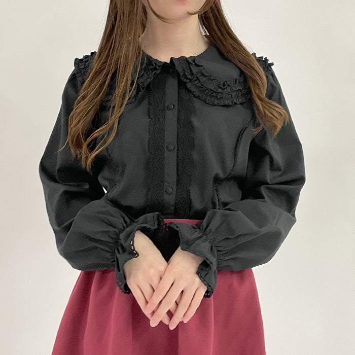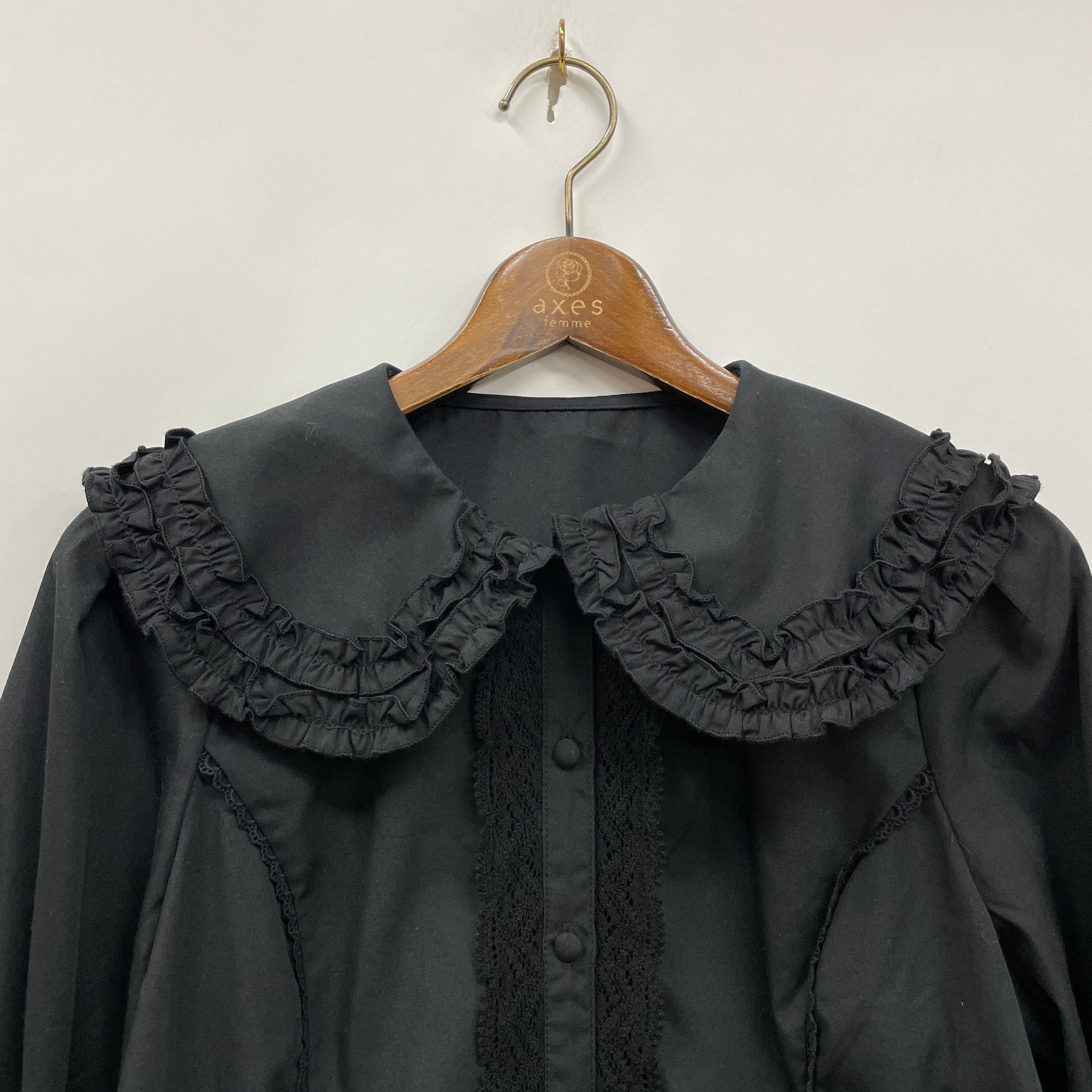衿の縁にホイップクリームの様にギャザーフリルが2列あしらわれています。首元の大きめリボンブローチは取り外しが可能です。