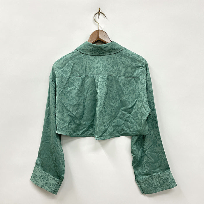 上品なジャカード生地のショートブラウスです。