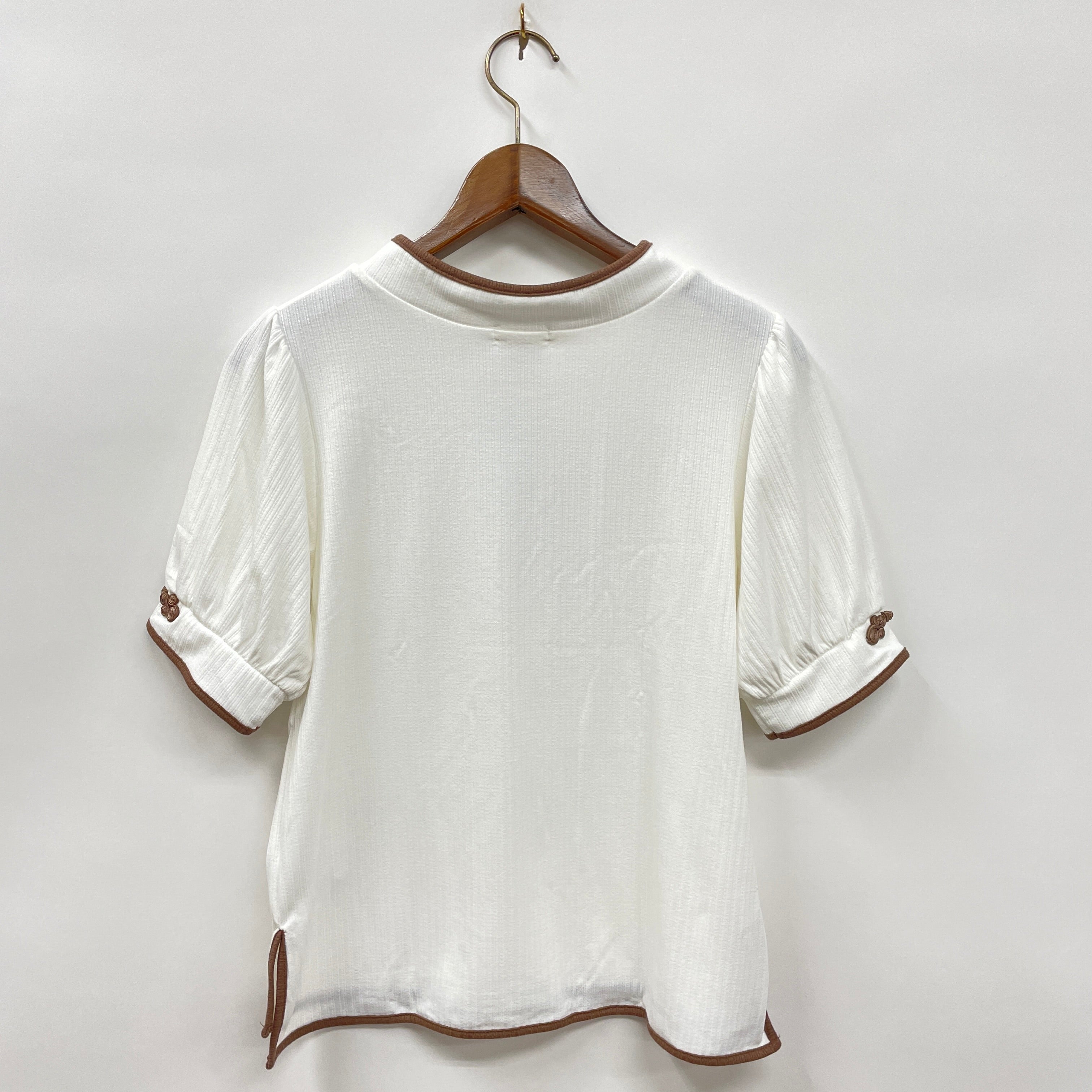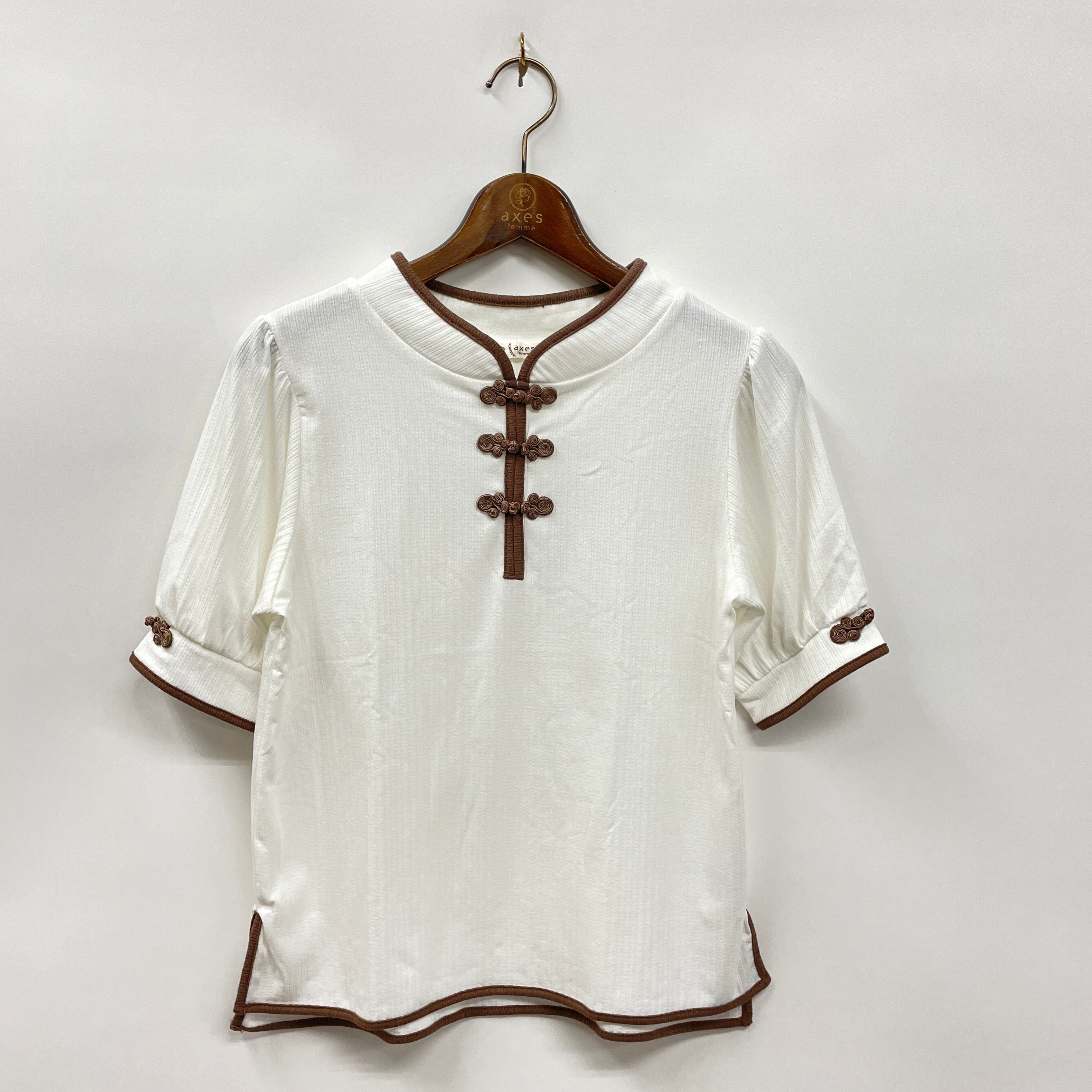 縁取りの配色ライン使いがポイントのチャイナボタントップスです。