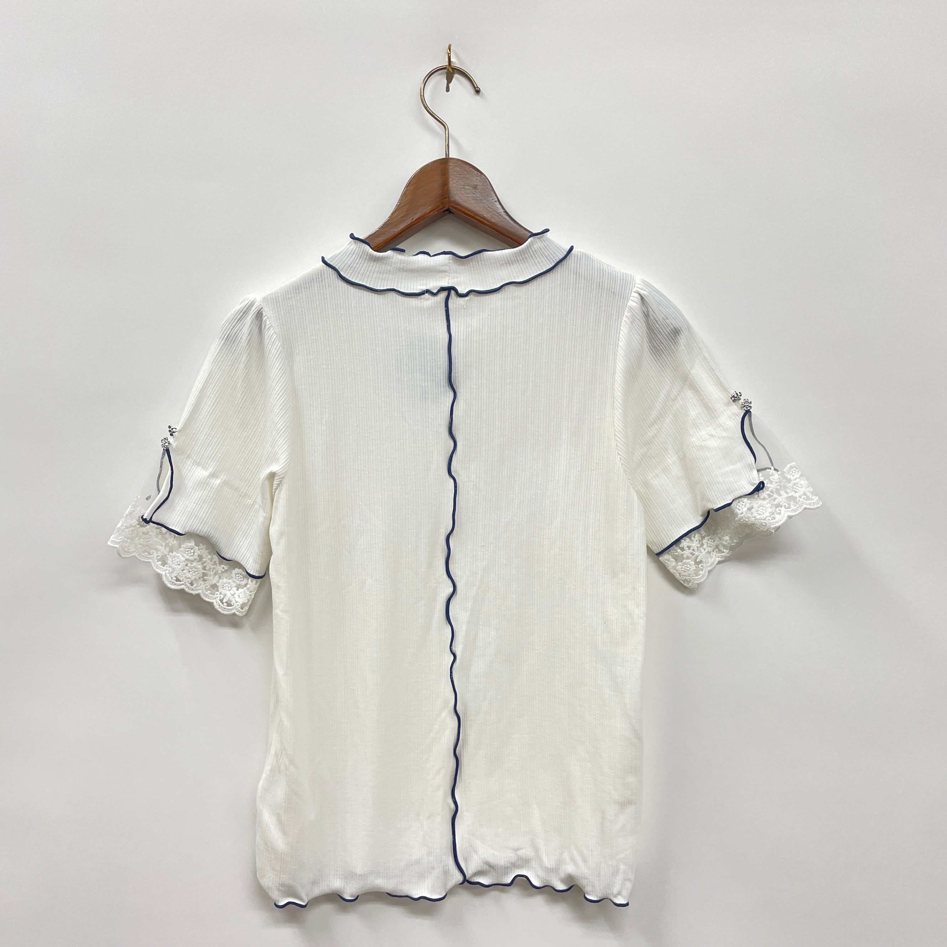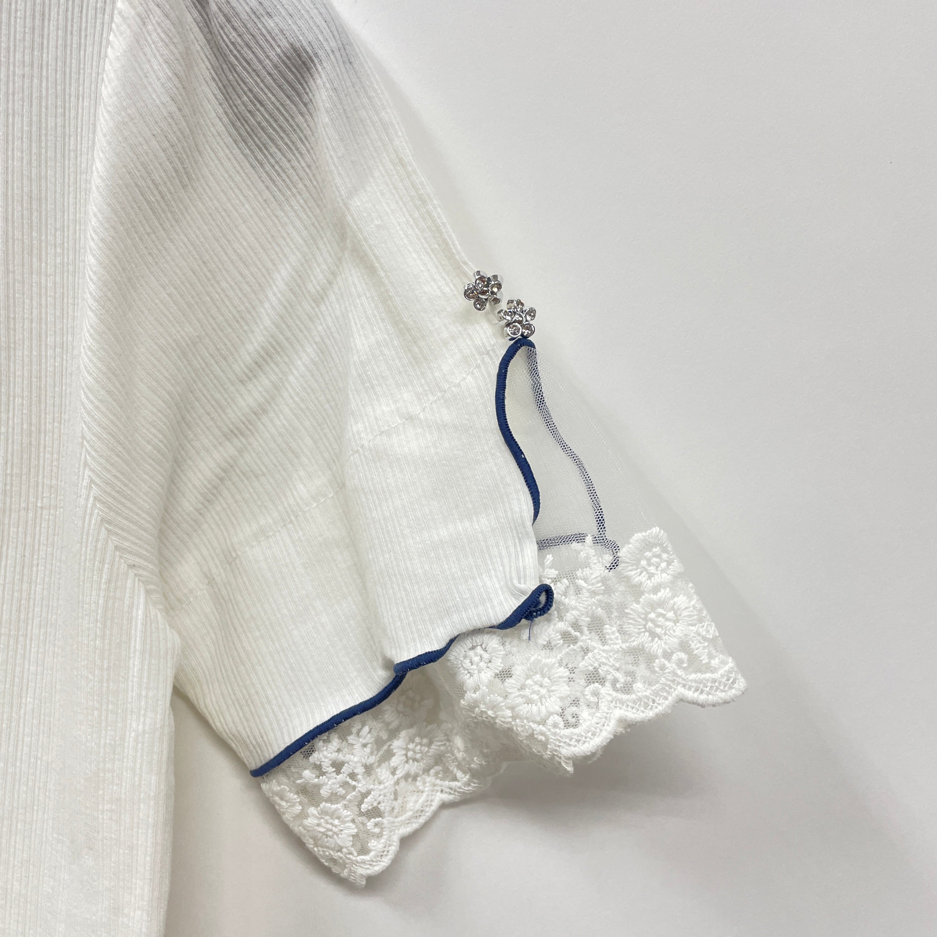 大人気アイテムの袖口レース×バイカラーメローデザインのトップスです。