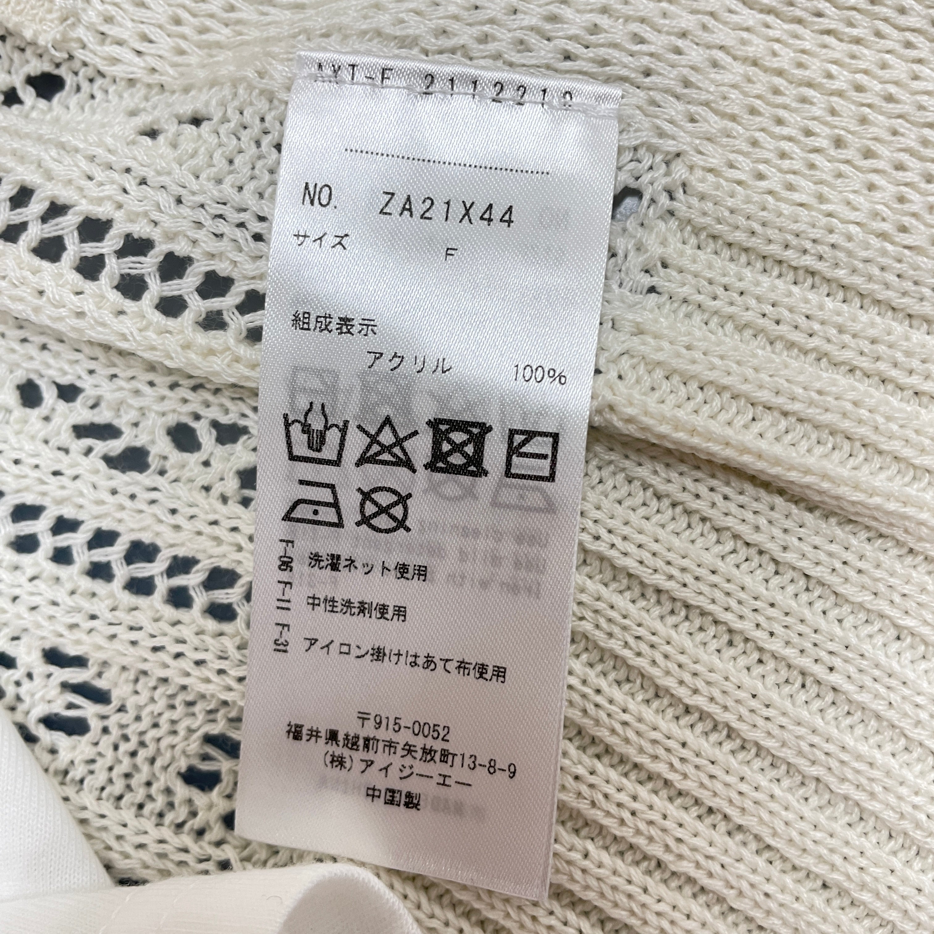 ダイヤ風×ストライプ見えの透かし編みの切替で、縦ライン見えなので、スッキリした印象に。