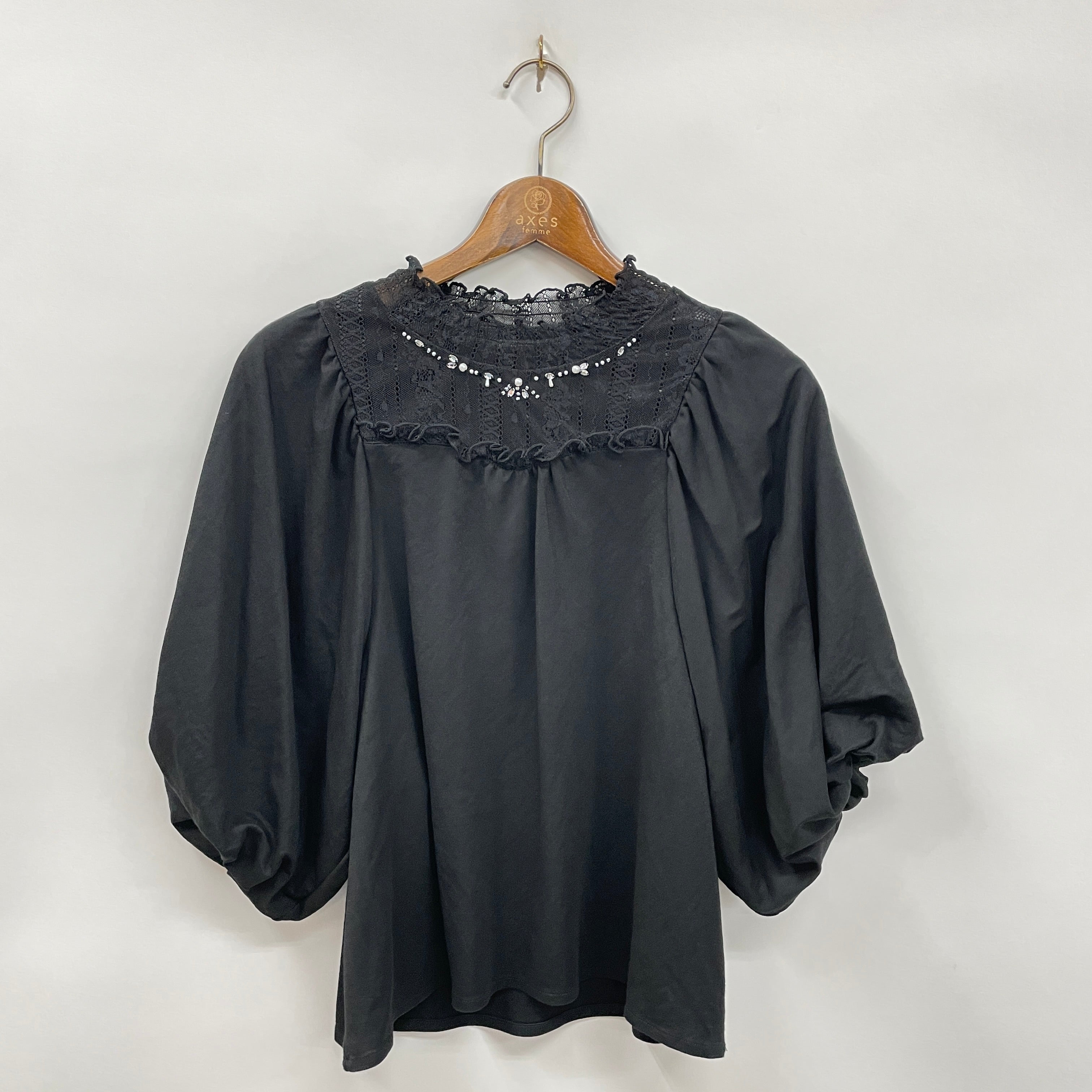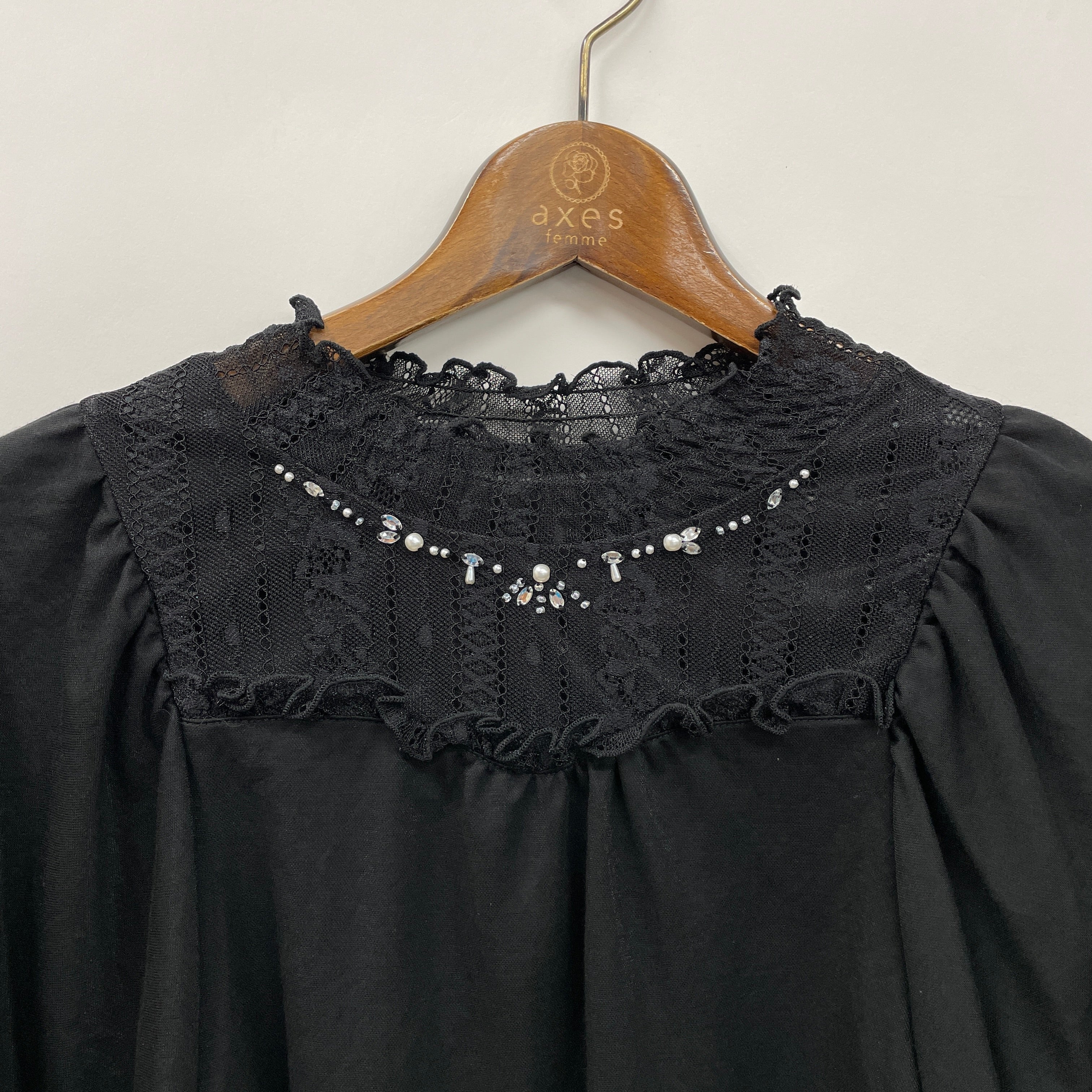 首元を華やかに飾るビジューがポイントです。