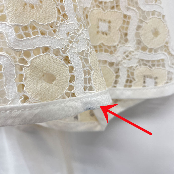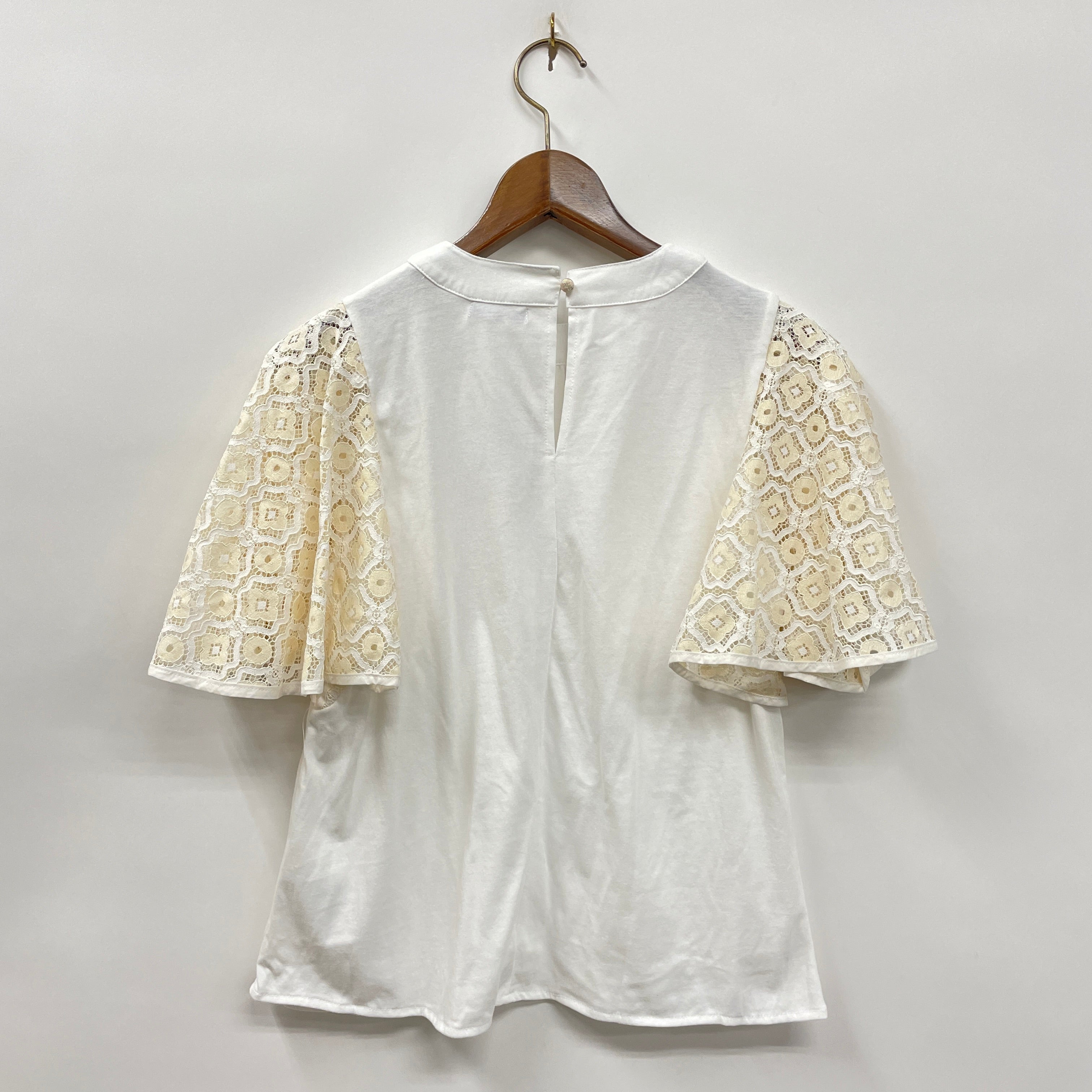 幾何学的で細やかなレース生地がたっぷりと広がる、華やかな袖デザインが特徴的なアイテム。