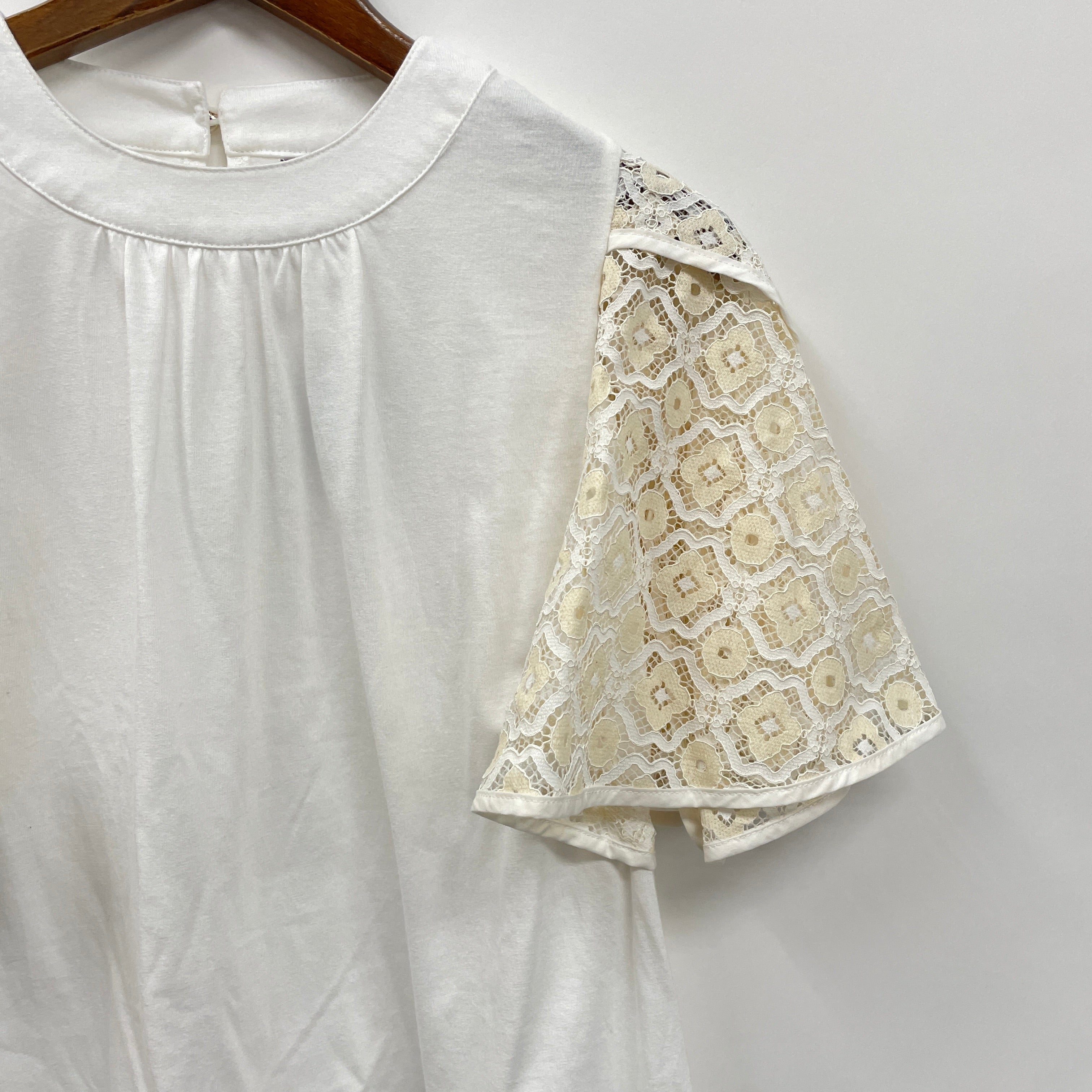 レース生地を贅沢に使用した、フレア袖が印象的なプルオーバーです。