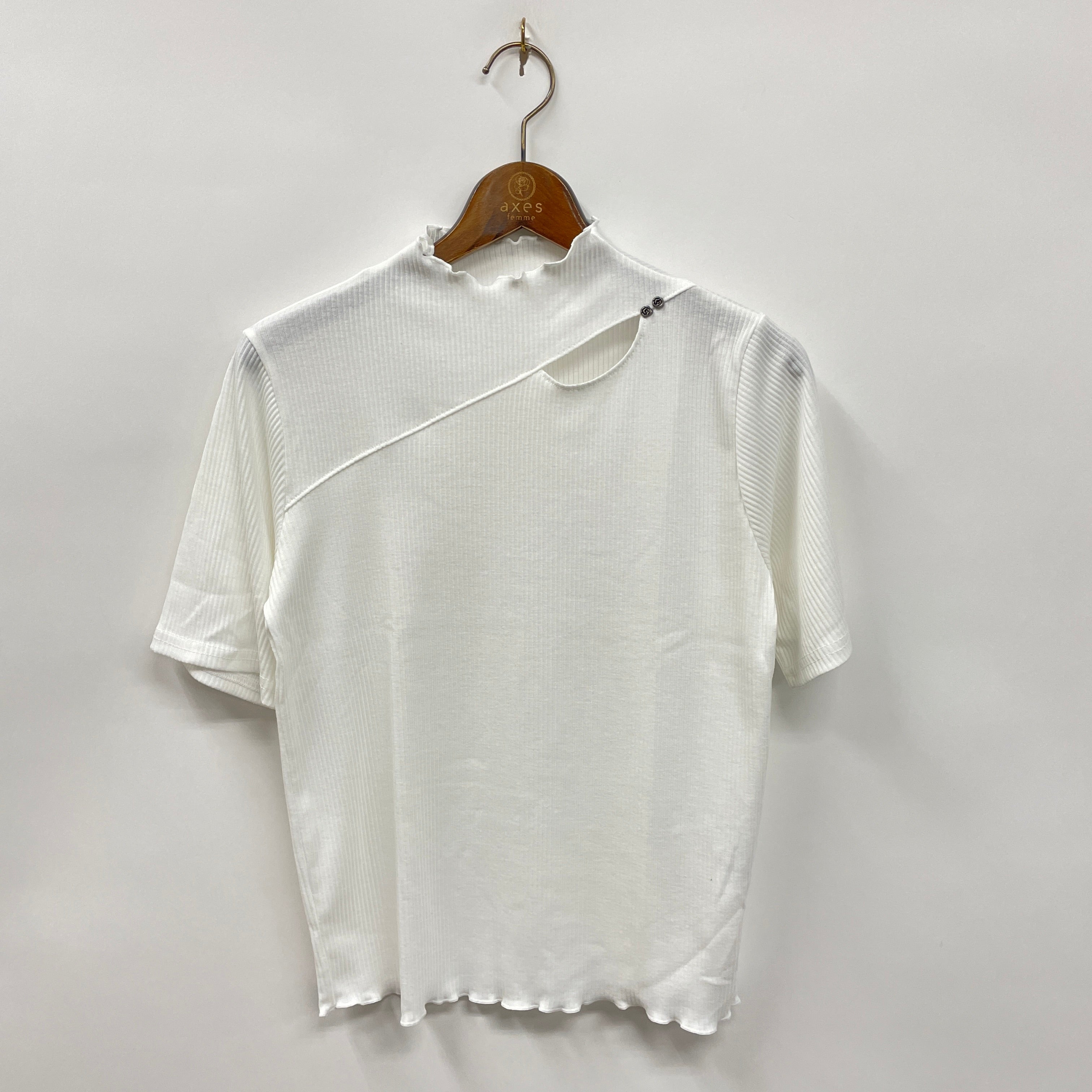 デコルテ部分にさりげなくデザインされたカットアウトディティールがクールなトップスです。