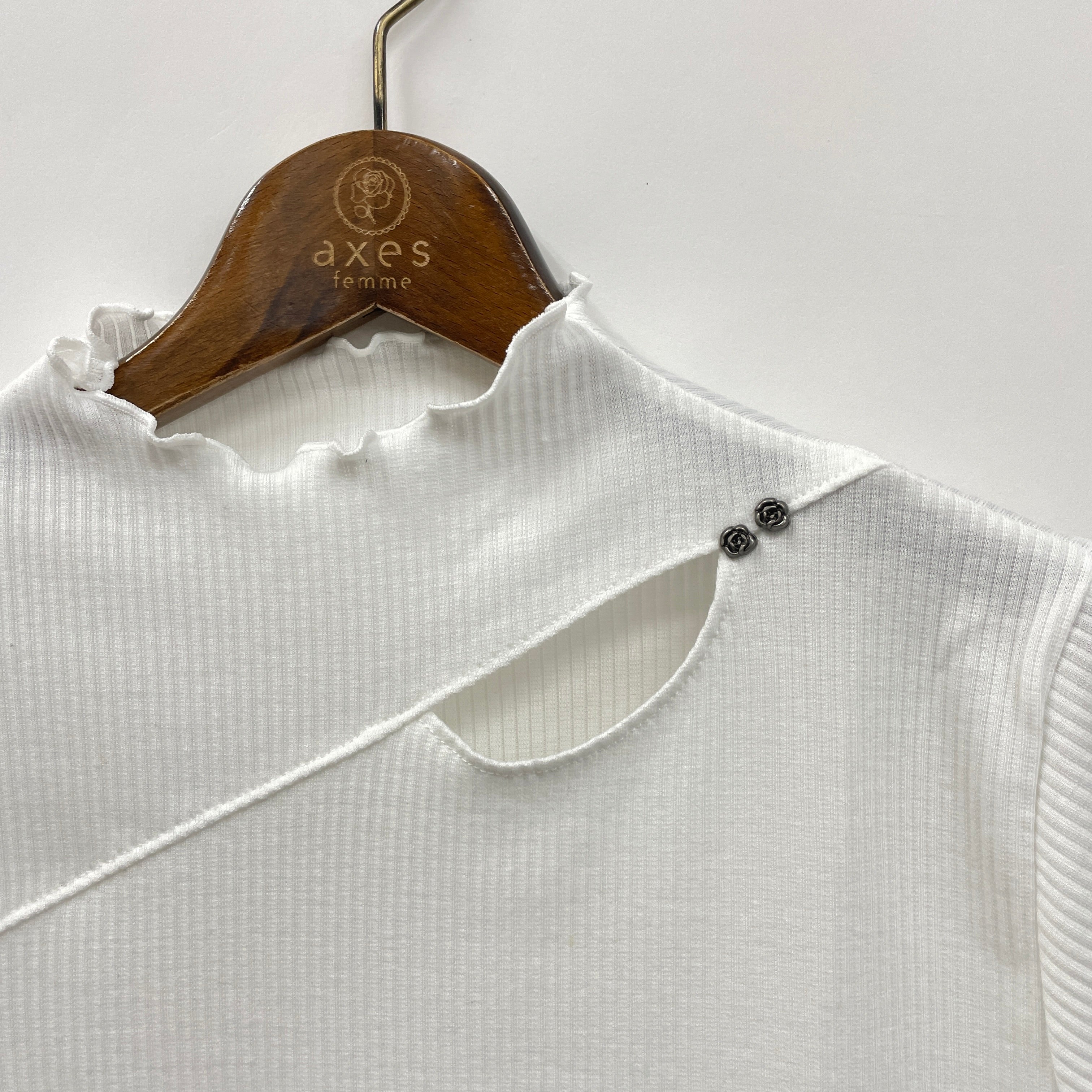 カッティングのサイドにはローズモチーフをプラス。薄手のリブ素材のため春先から真夏までさらりと着ていただけます。