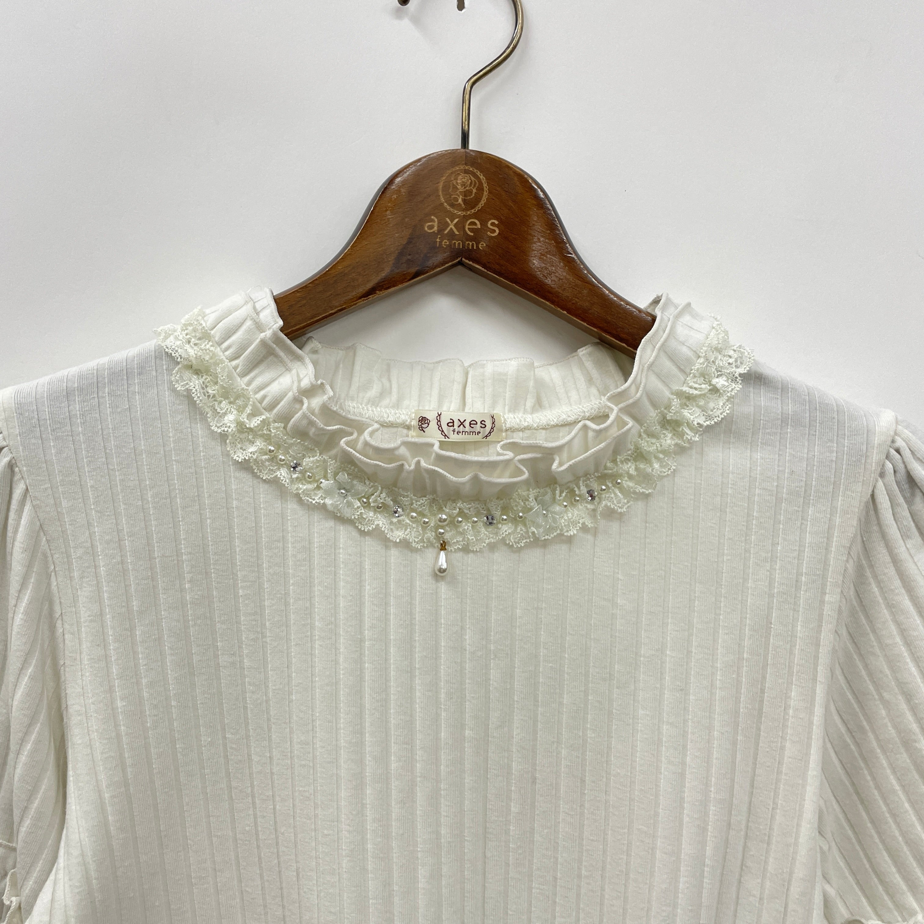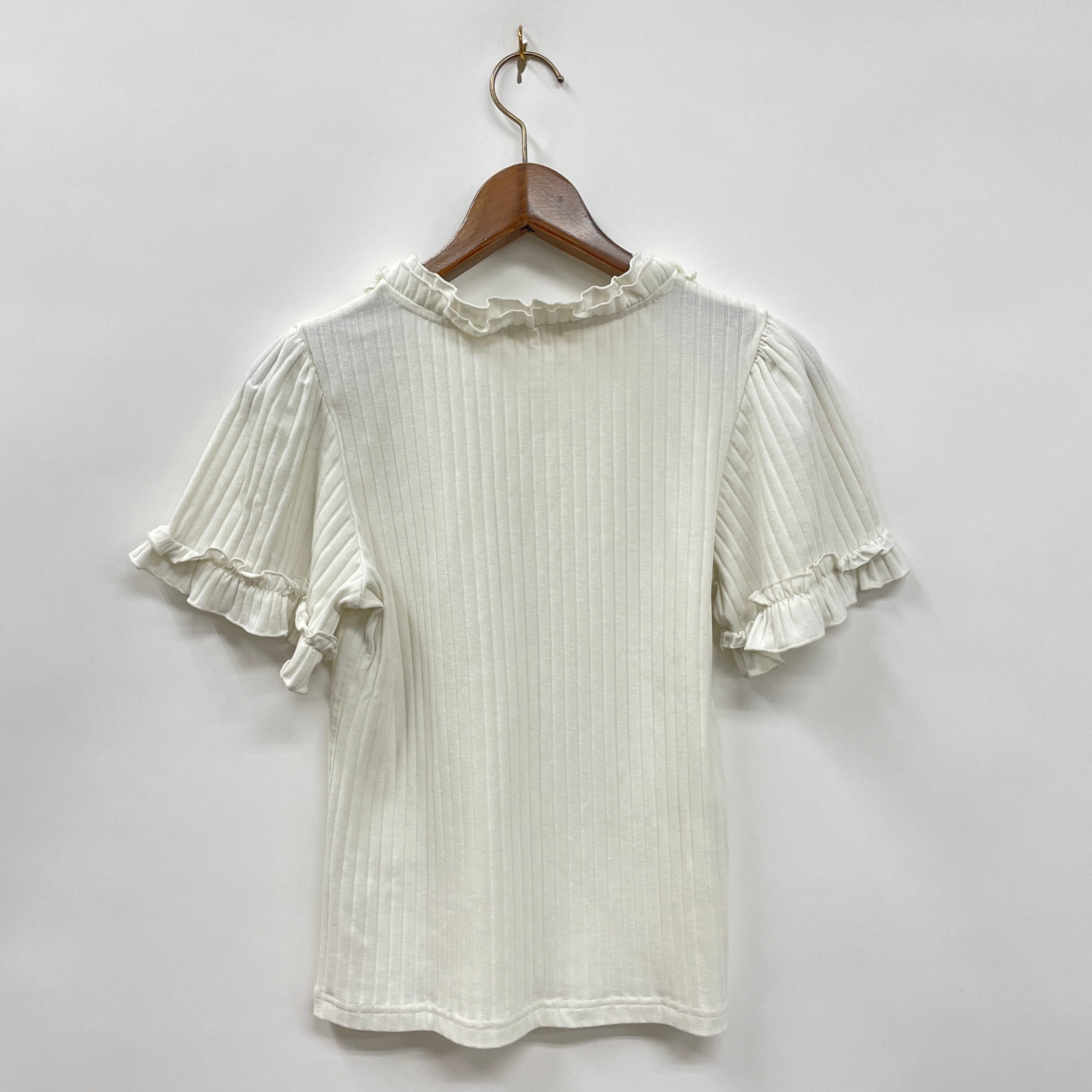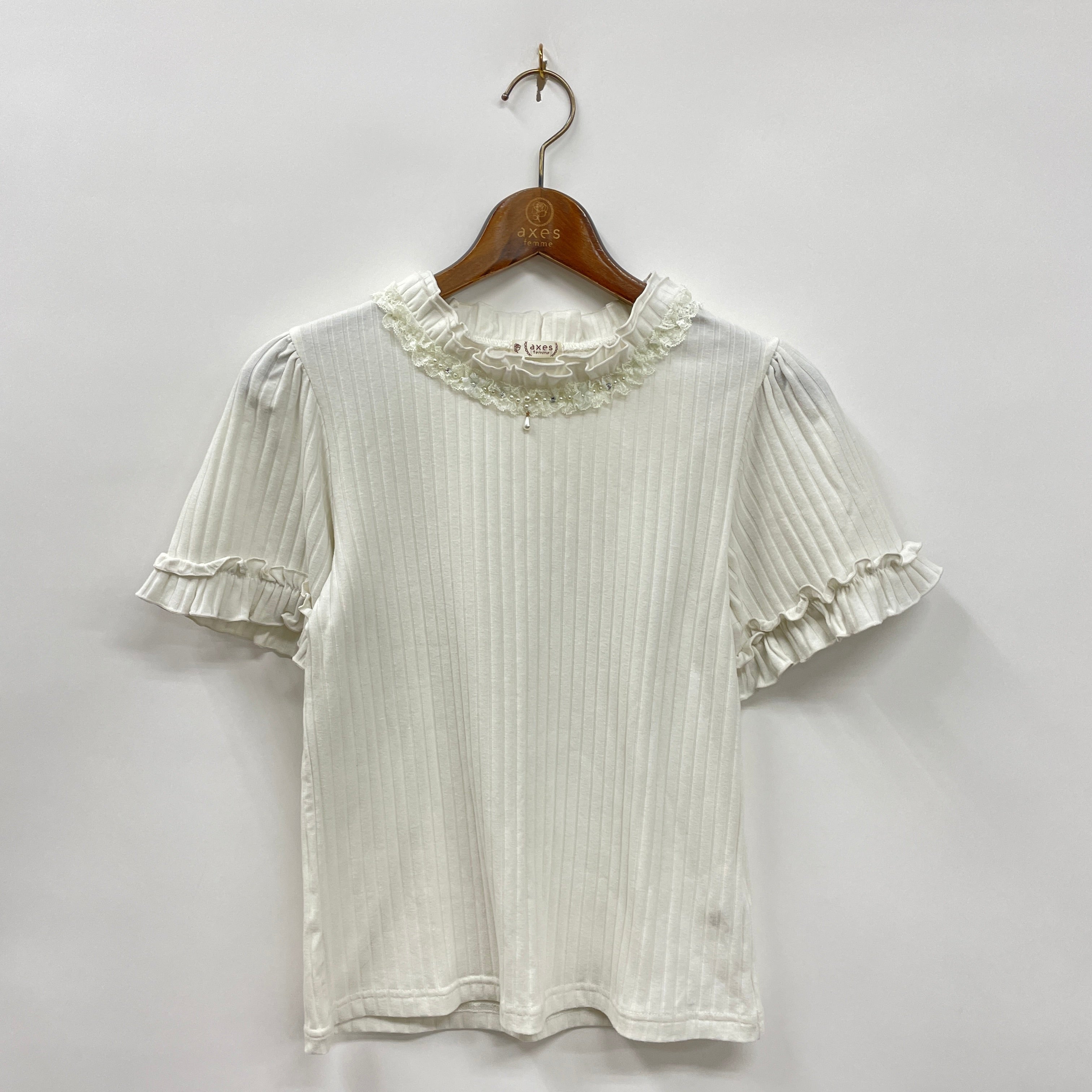 袖口には共フリルをあしらい、フレア袖のように広がるため二の腕カバーがうれしいポイントです。