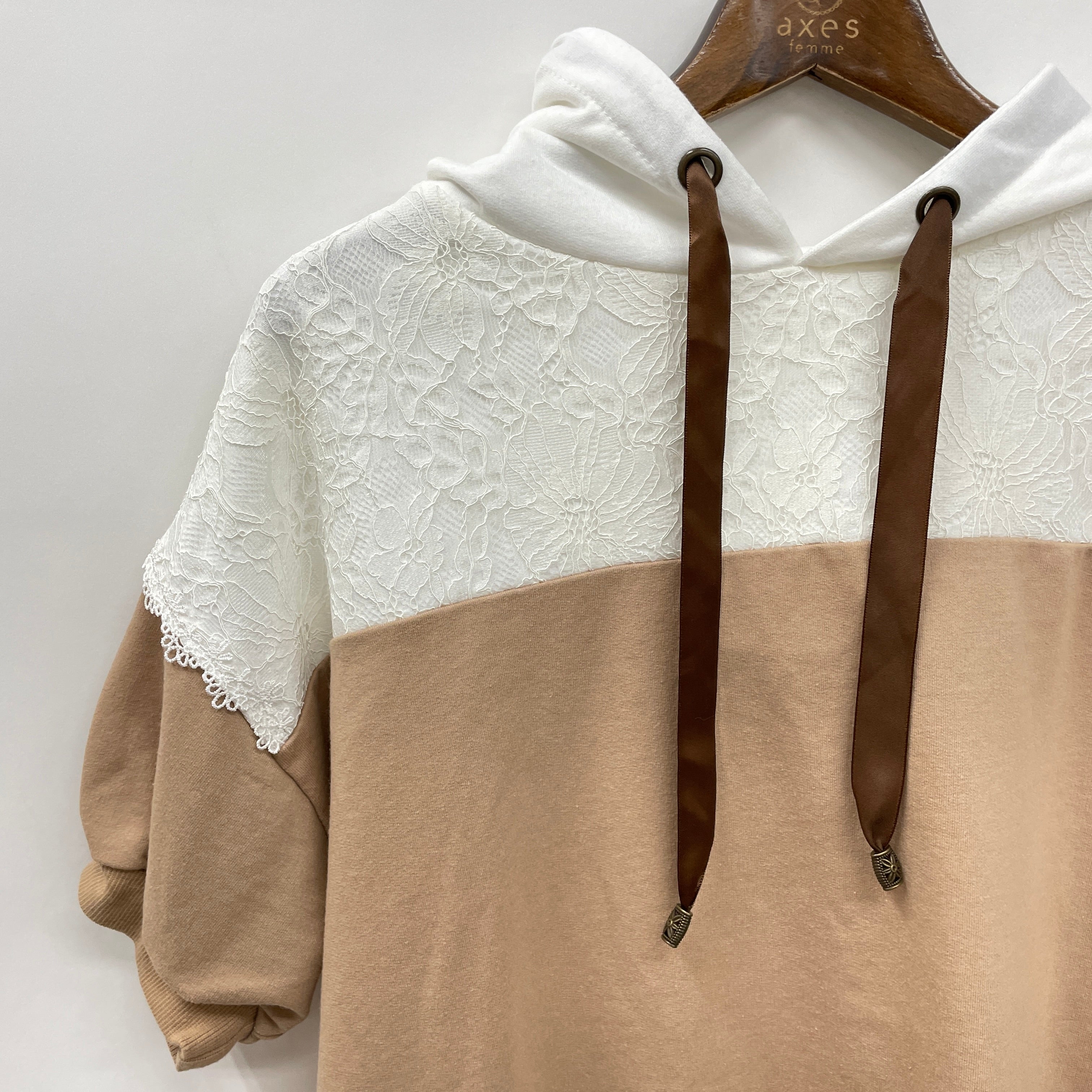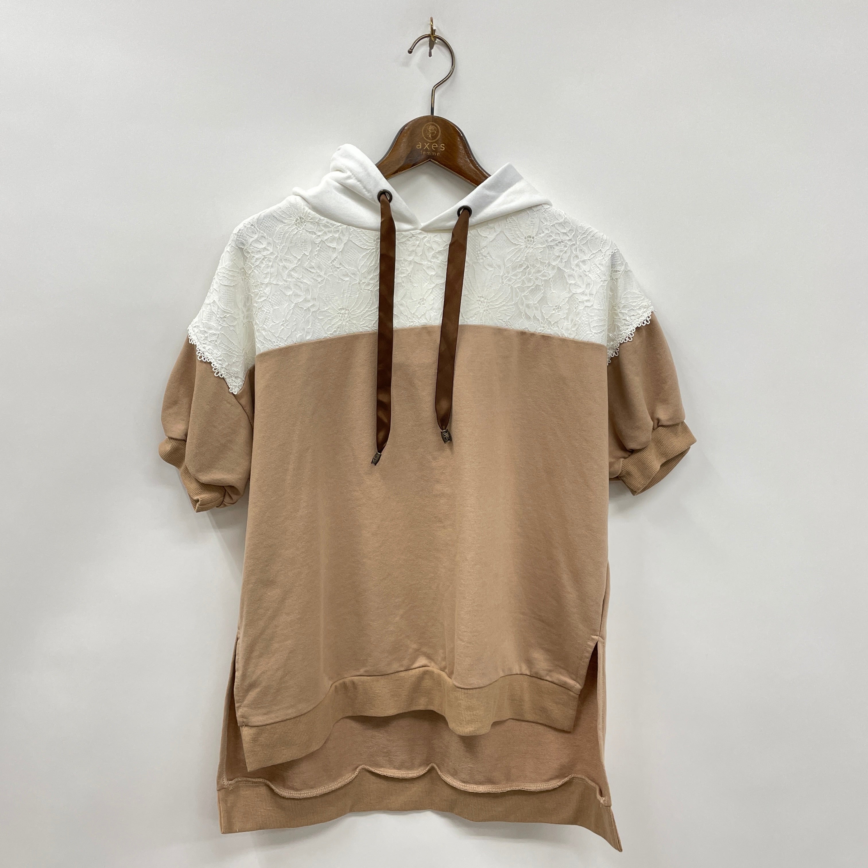 トレンド感のある裏毛のバイカラーパーカープルオーバーです。5分袖になるので、暖かい日の増えた今の時期にピッタリのアイテム。トレンドのピスタチオグリーンもご用意です。カジュアルスタイリングに合わせやすい1枚です。