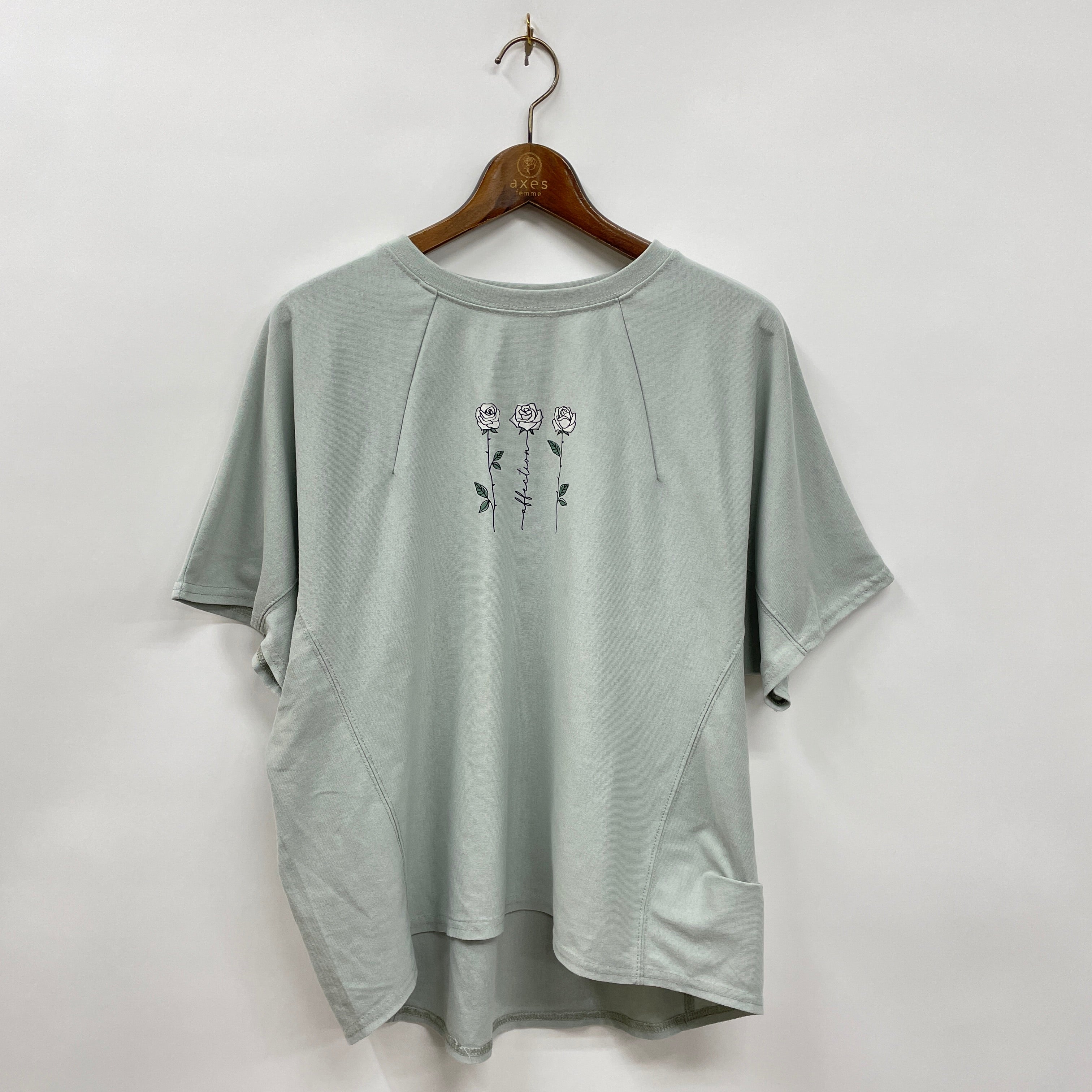 夏にうれしい吸水速乾機能付きのゆったりドルマンTシャツです。