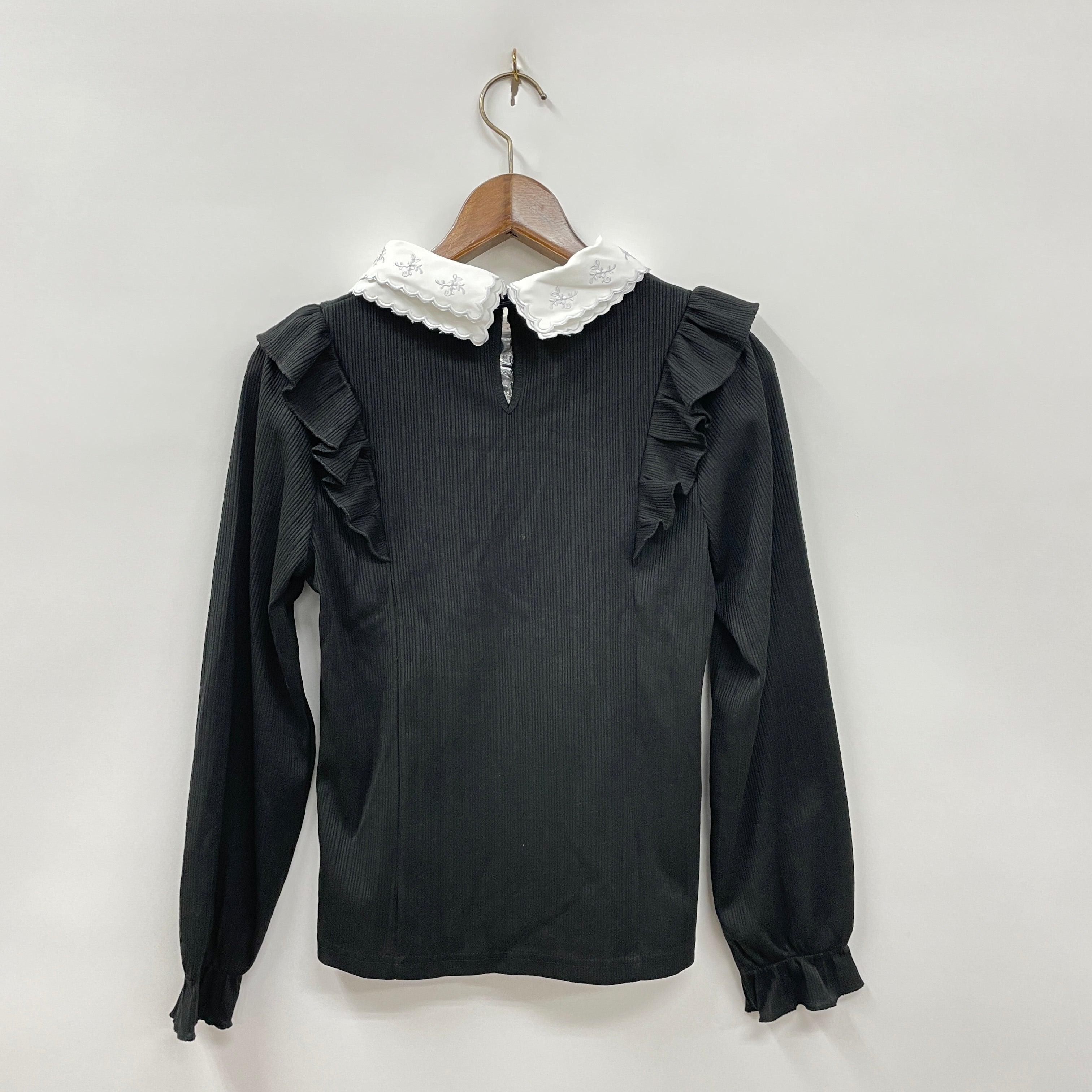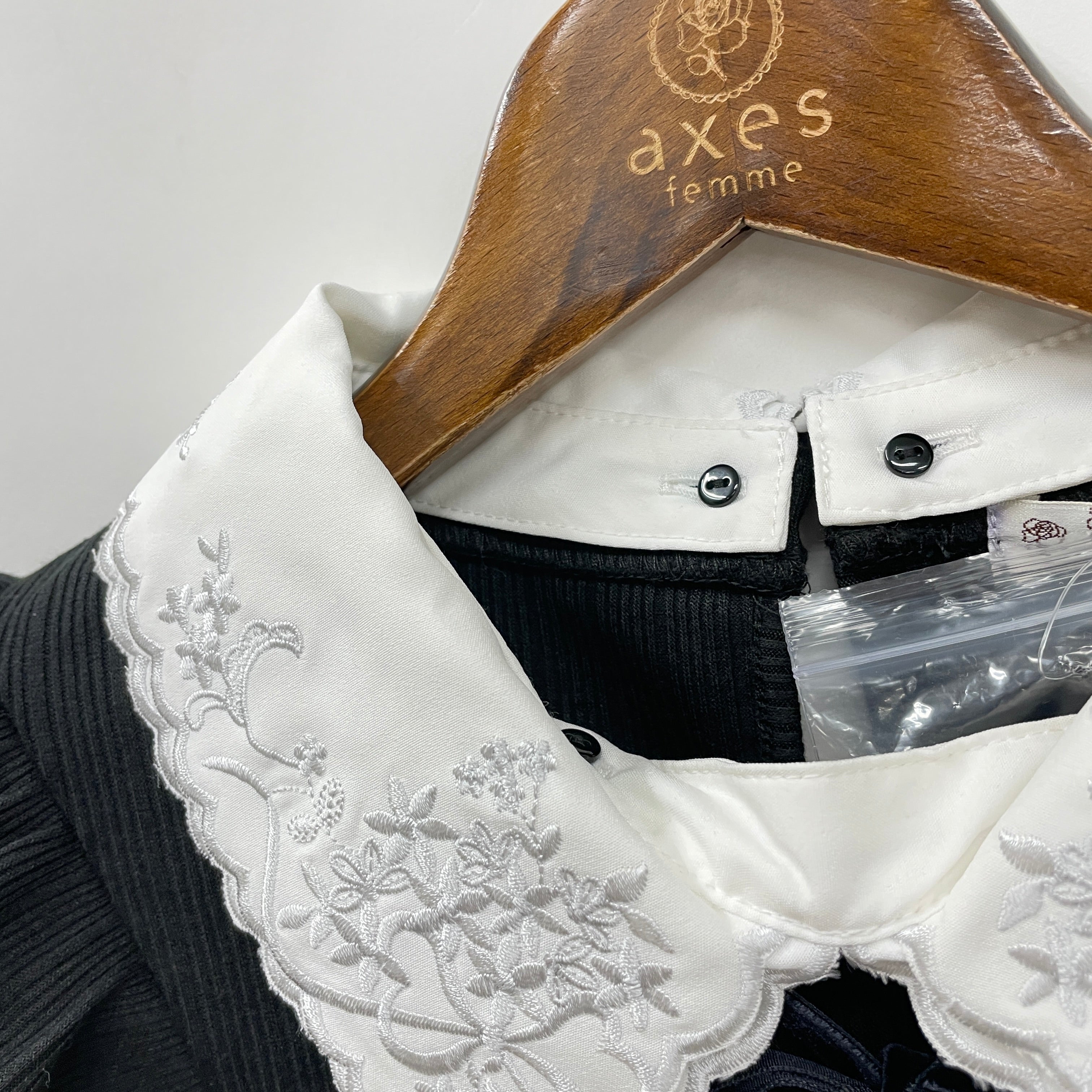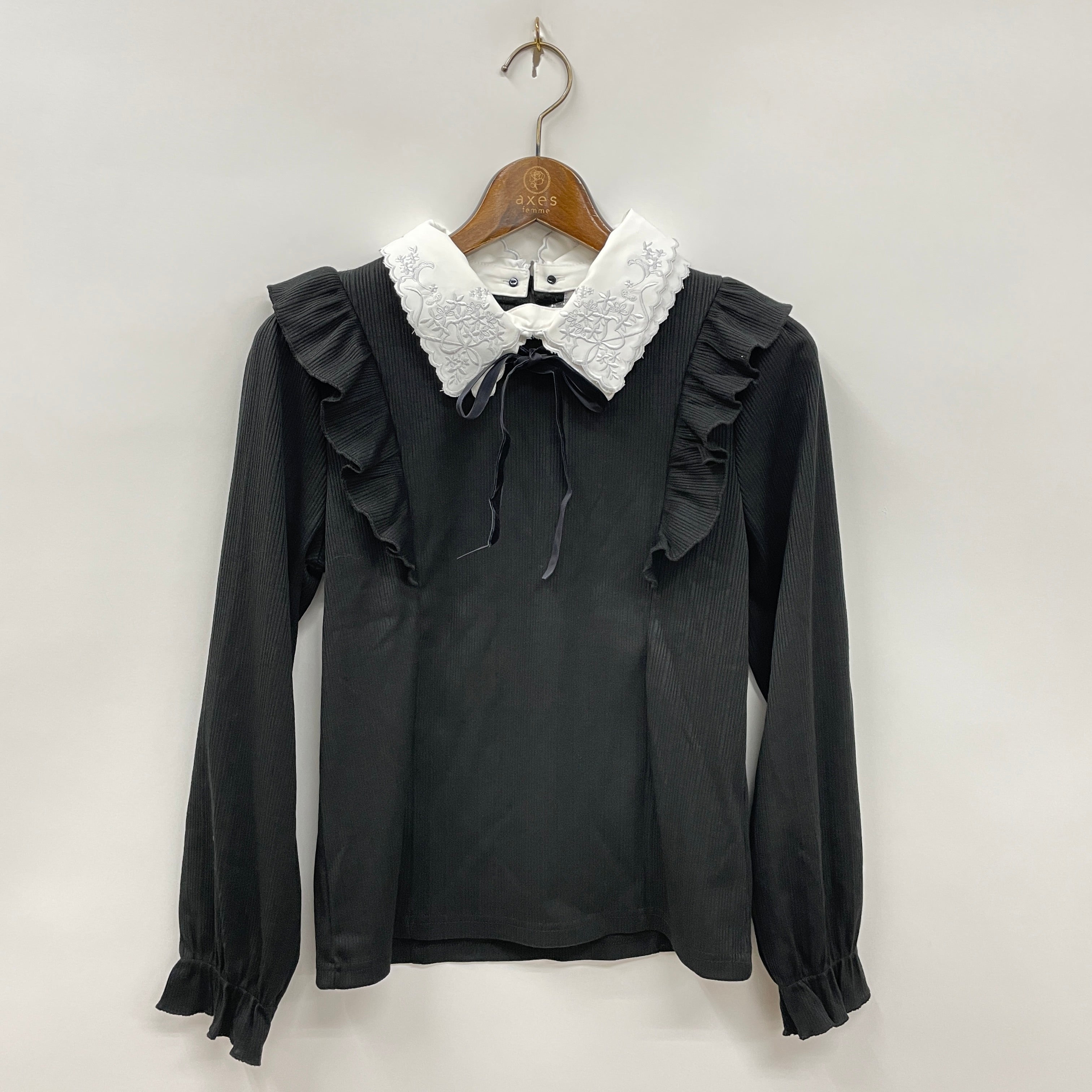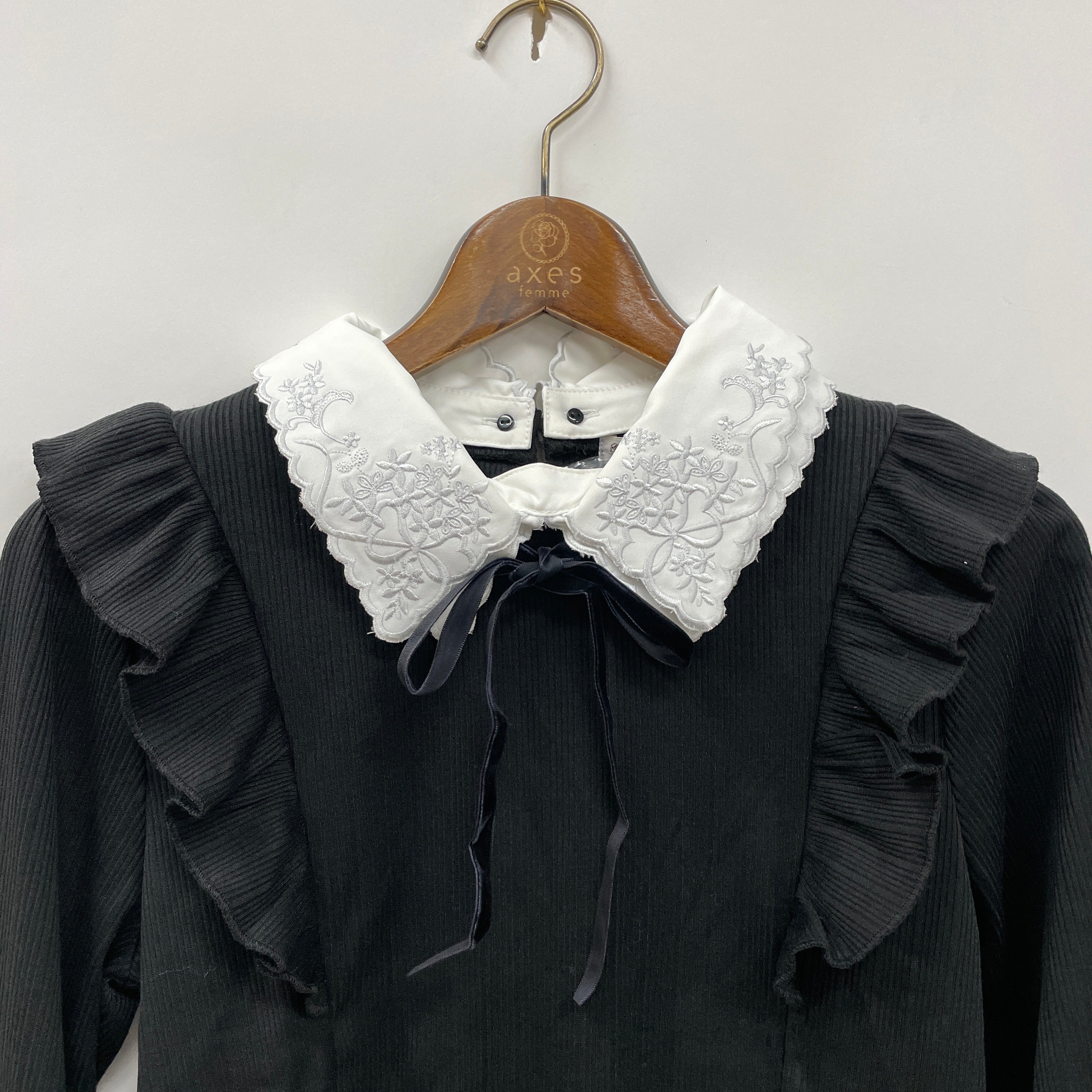 華やかなブーケ刺繍を施した2枚襟デザインがポイントのプルオーバーです。
