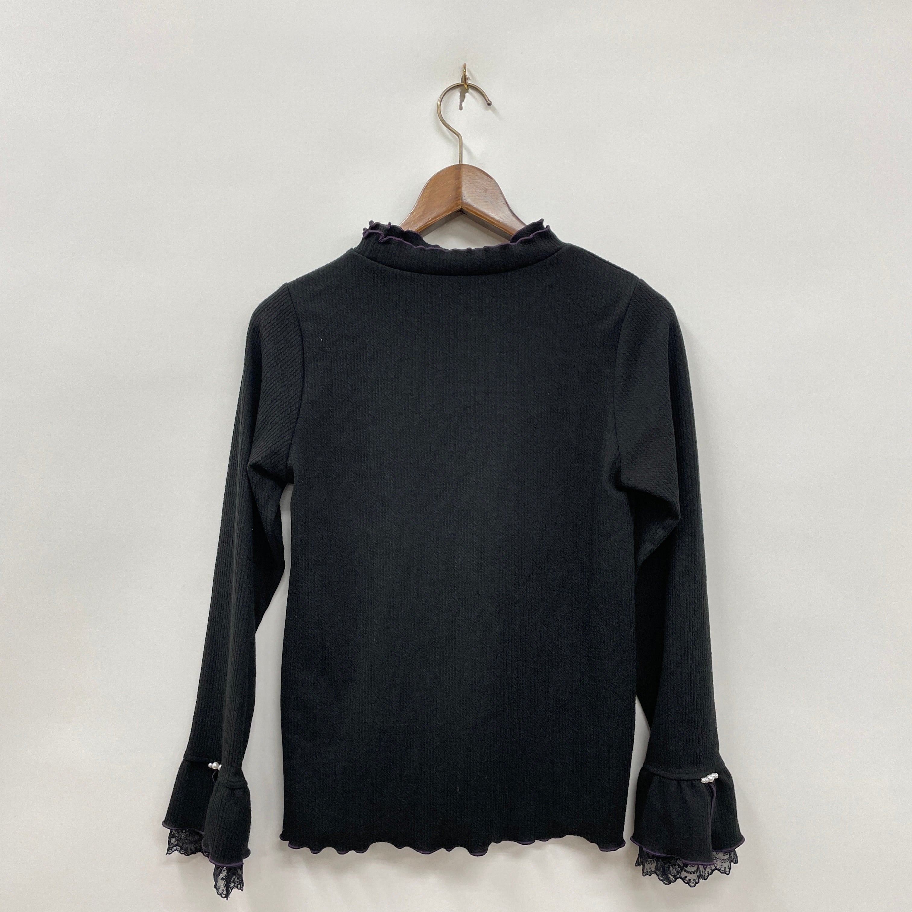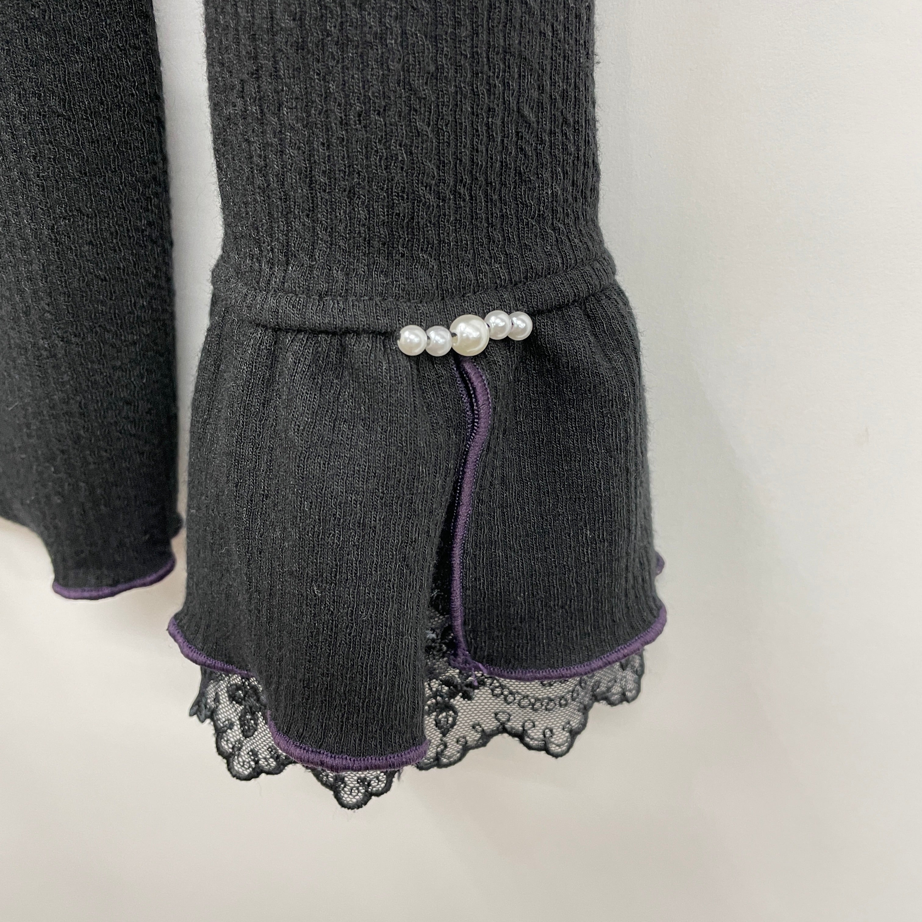 袖口には配色の繊細なレースが華やかにあしらわれています。