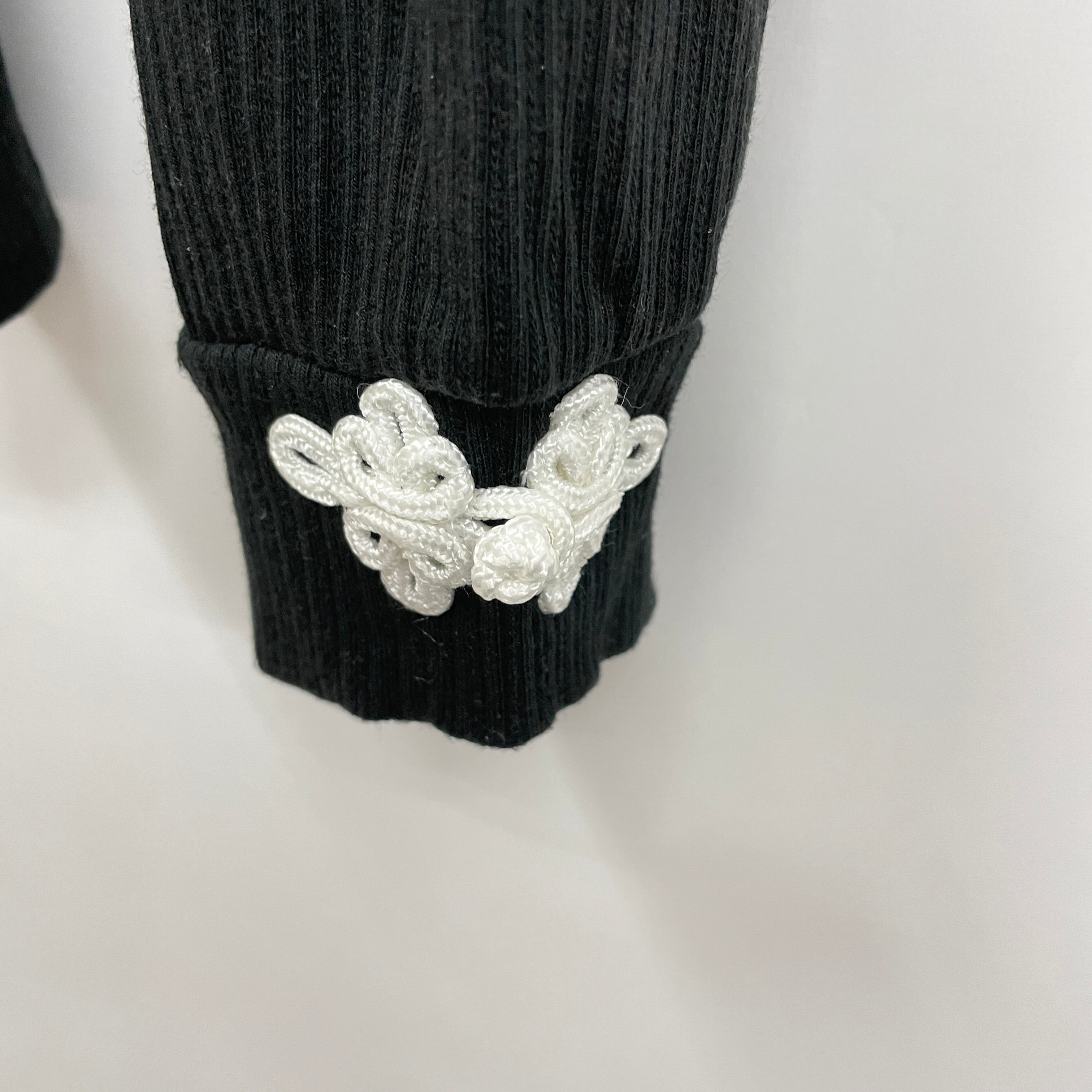 カラーは中華な雰囲気溢れるアカ×クロ、フェミニンで明るいラベンダー×シロ、チャイナボタンがハッキリ目立つ黒にシロボタンの3色でご用意です。