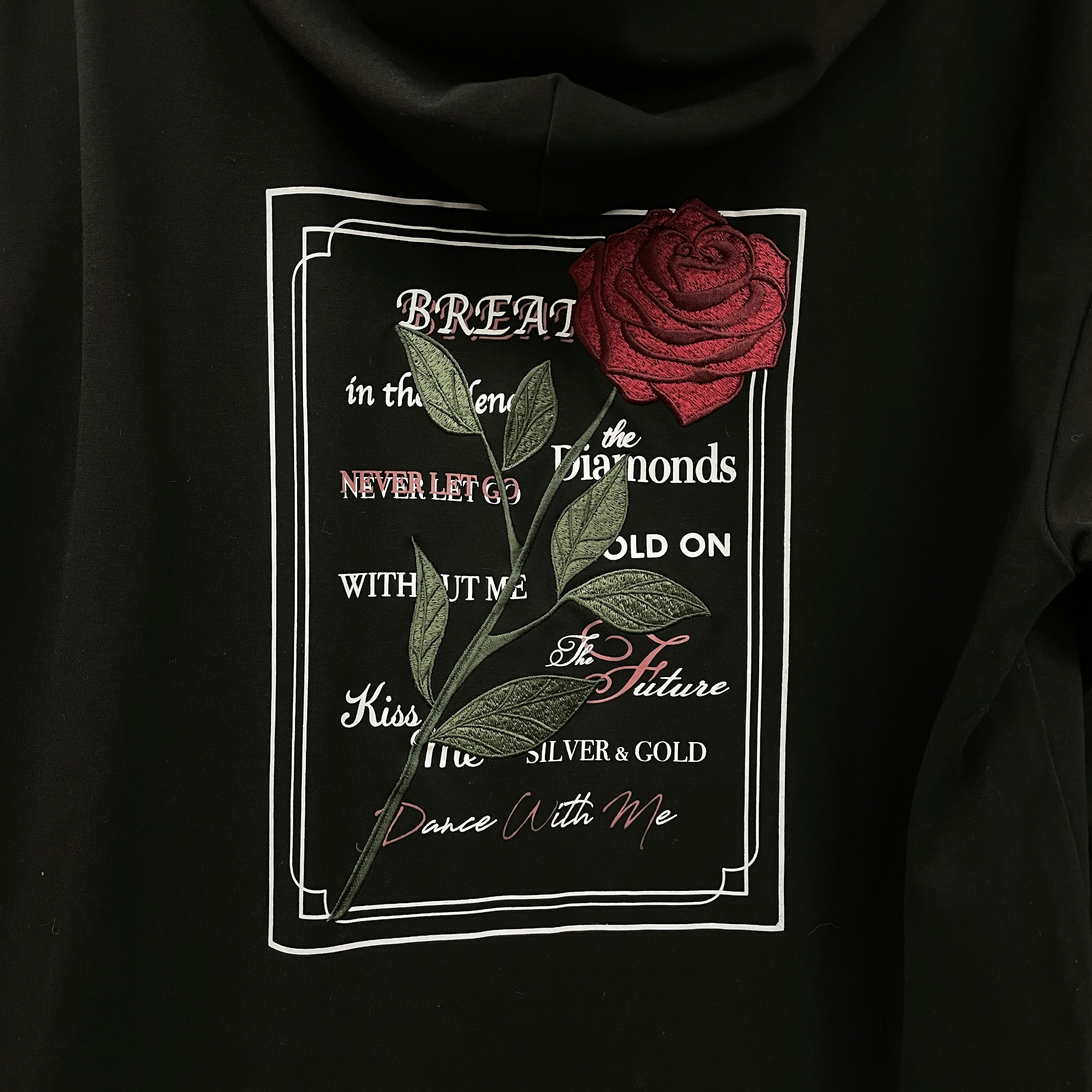 axes femmeらしい薔薇の刺繍が印象的なパーカーです。