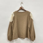 肩はレース切替デザインになっており、裏にシフォンを重ねているためほんのり透けるデザインがポイント。