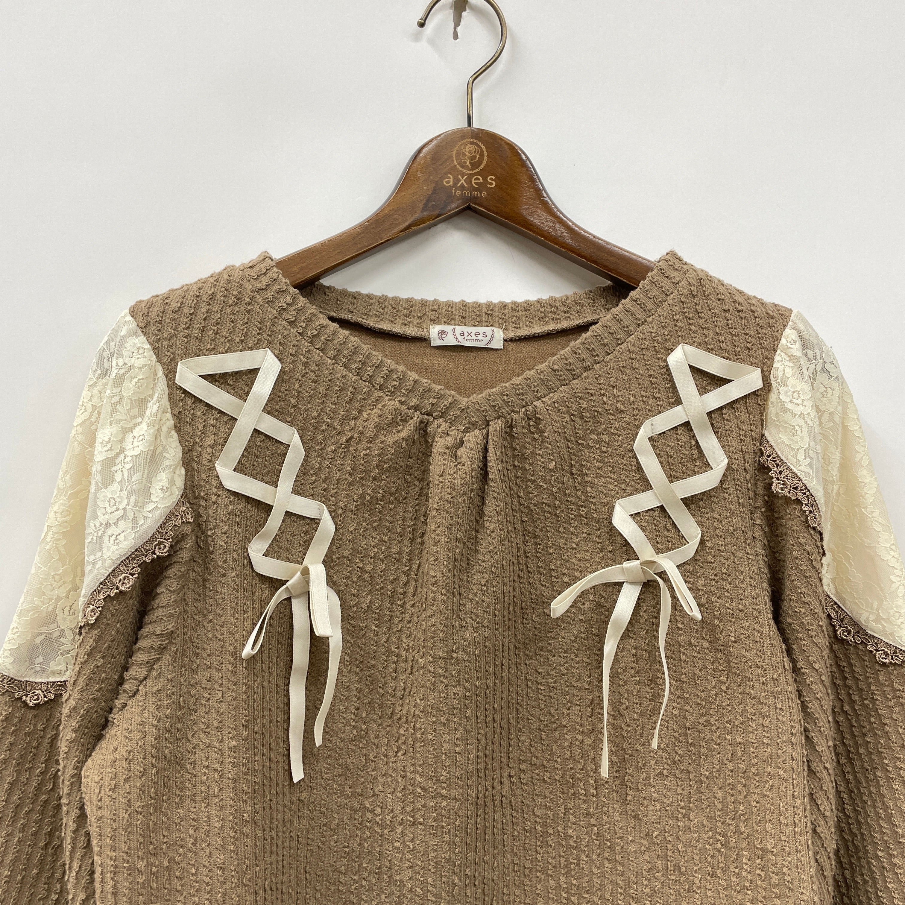 胸元のレースアップデザインがaxes femmeらしい定番のトップスです。