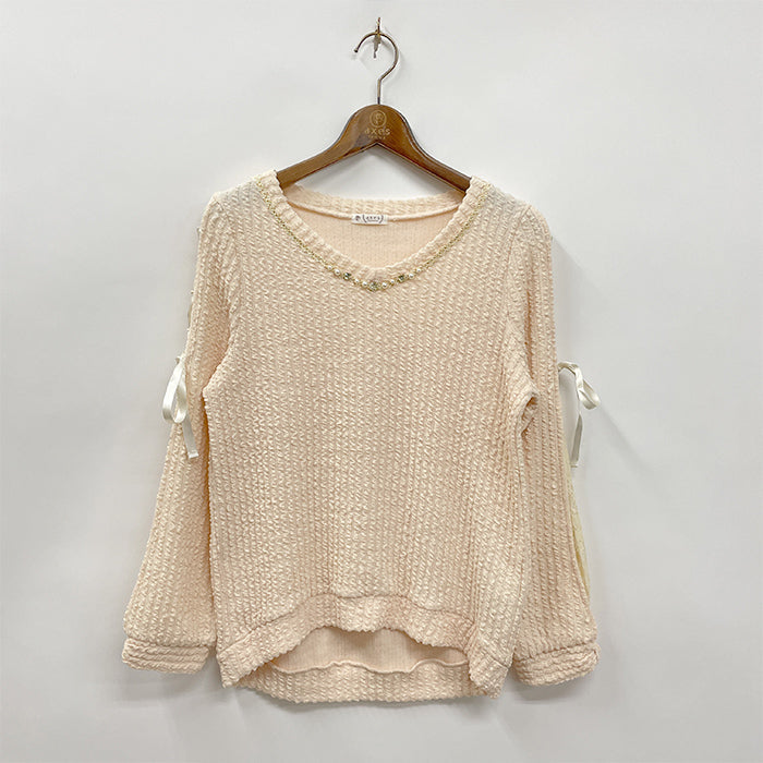 袖レースUPニットソーPO