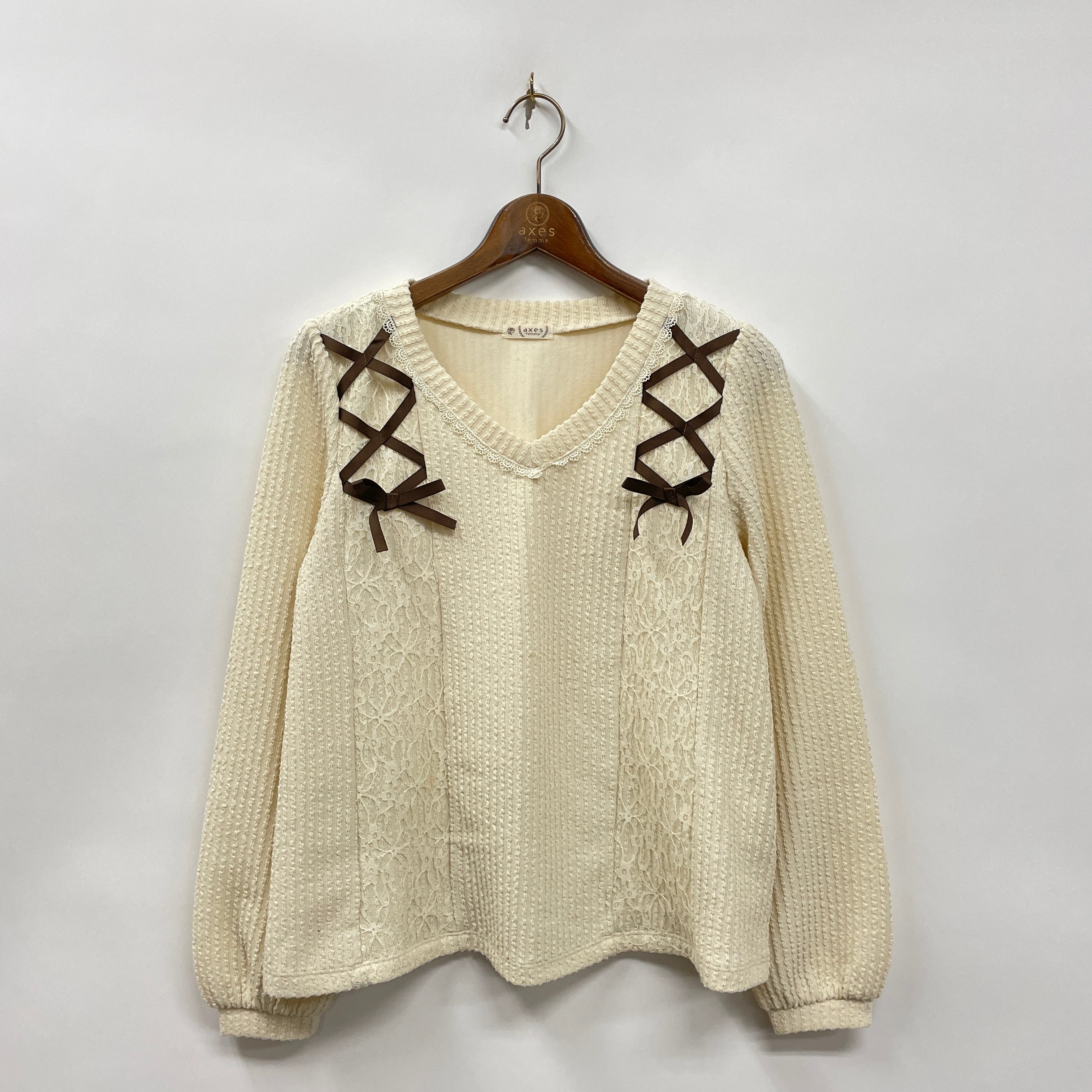 肩からのレースアップがポイントのVネックプルオーバー。伸縮性のある定番生地で、着心地◎さりげなくAラインになっているので、パンツコーデがオススメです