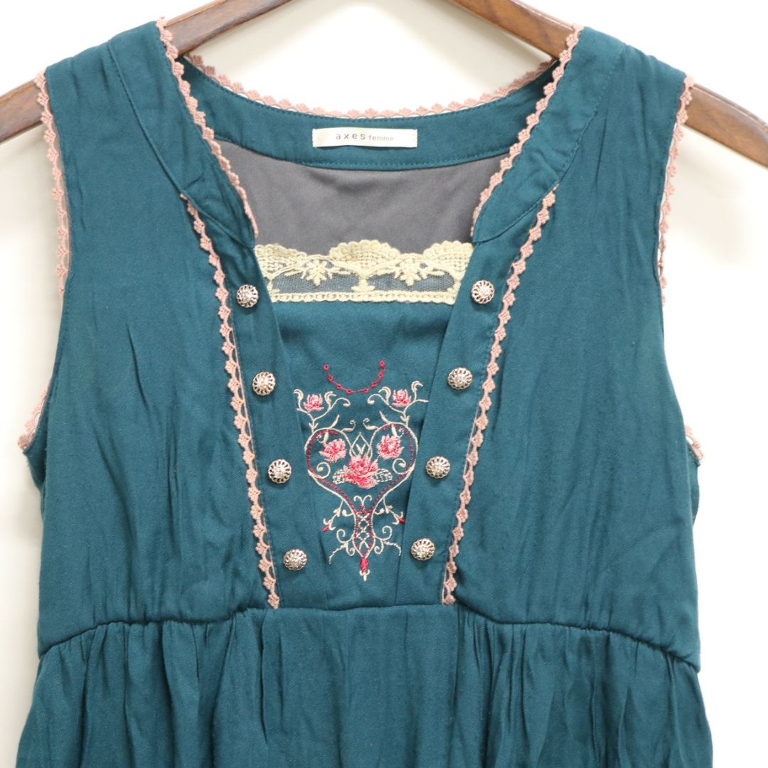 カラーの刺繍がカワイイレディライクな上品シルエットのチュニックです。胸元の釦使いがクラシカルな印象です。