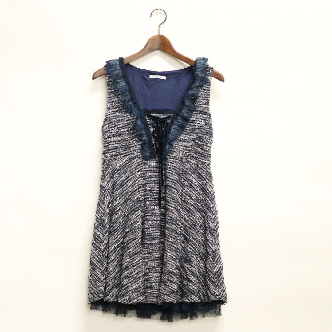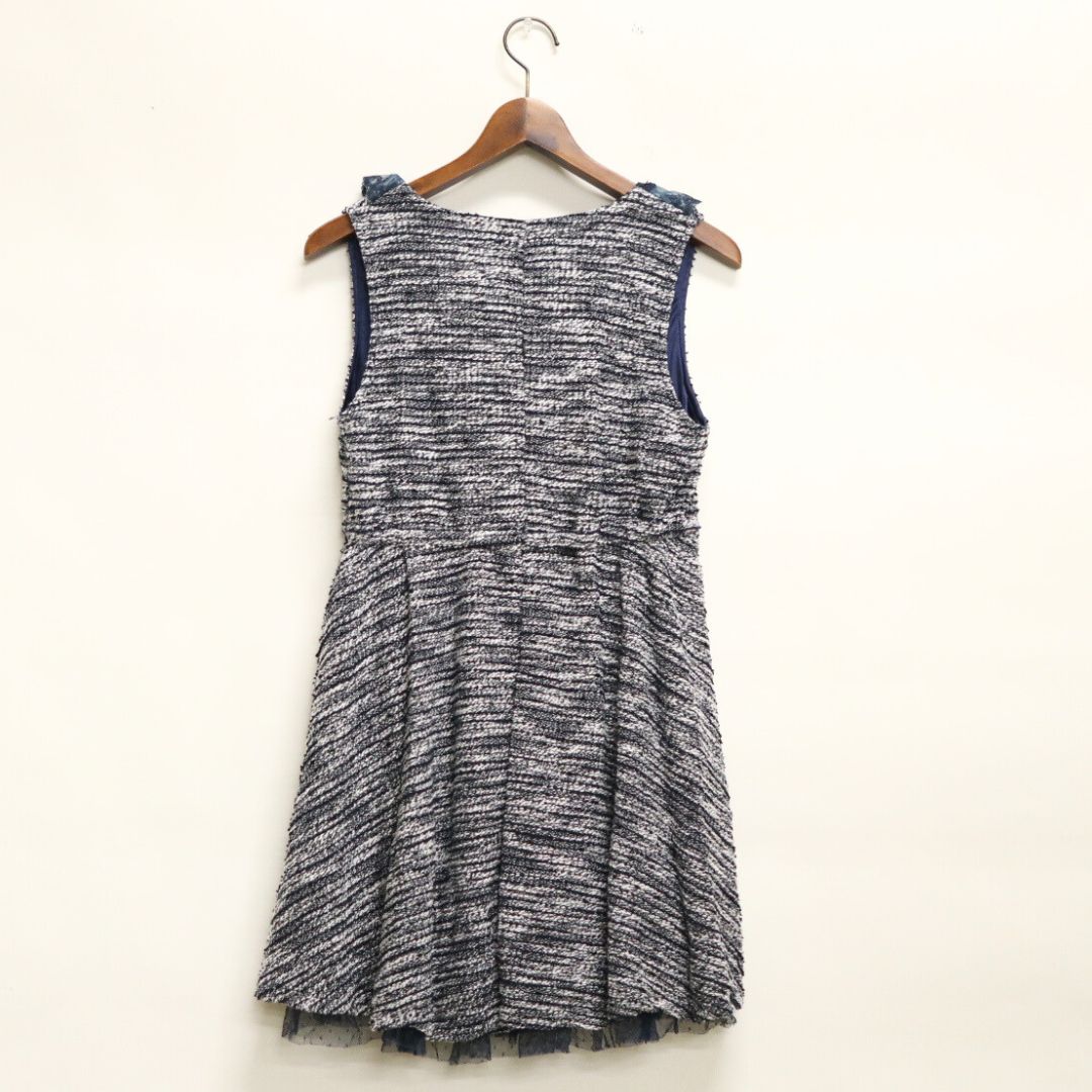 カットツイードを使用したフィットアンドフレアーのチュニックワンピースです。短め着丈なのでペチ的ミニ合わせがオススメです。ほっこり素材で冬にピッタリなフェミニンアイテムです。