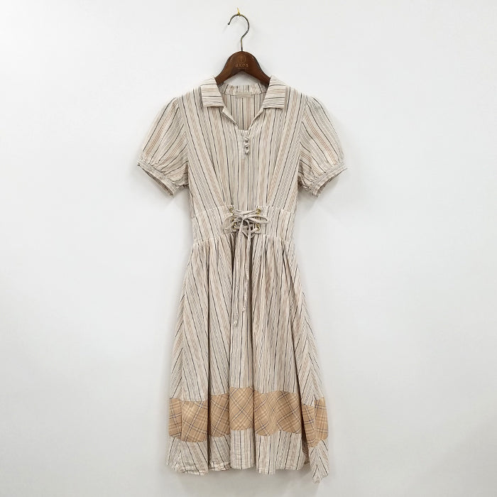 爽やかなカラーのマルチストライプにチェックを掛け合わせたワンピースです。