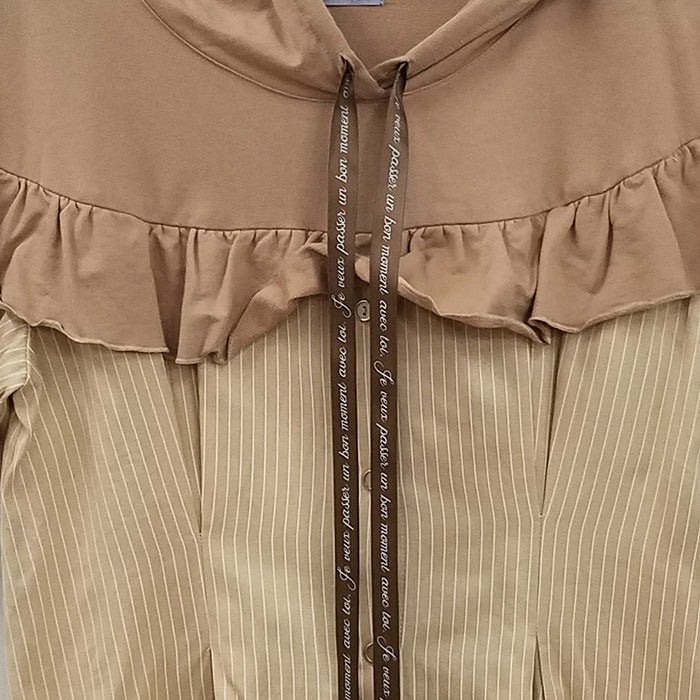 カットソー素材とストライプ生地を合わせたデイリー使いにもおすすめのアイテムです。