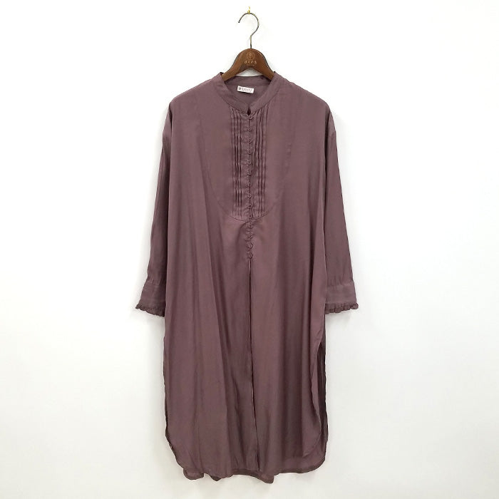 微光沢のあるヴィンテージサテン素材のシャツワンピース。
