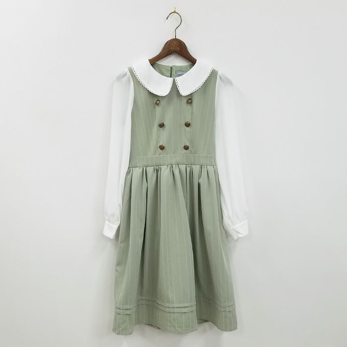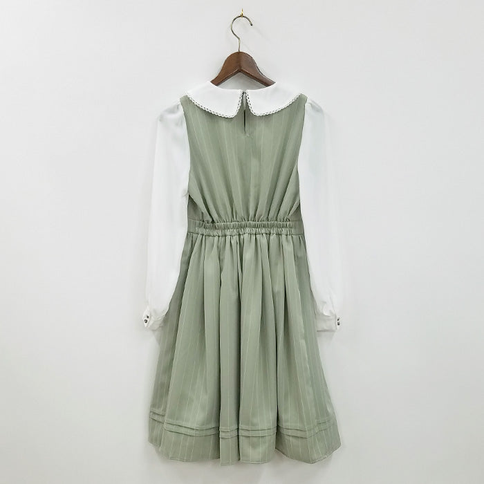 白い襟に爽やかな春カラーのストライプで清楚な印象に仕上げました。