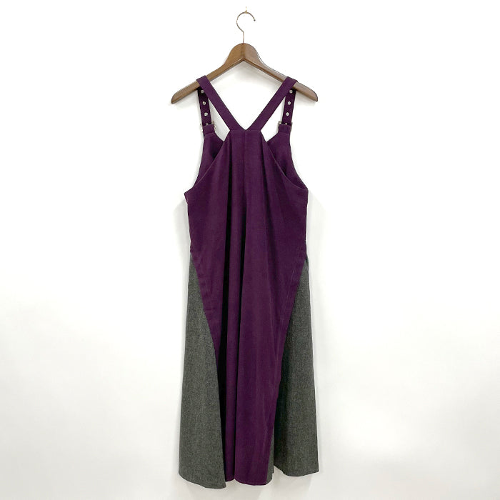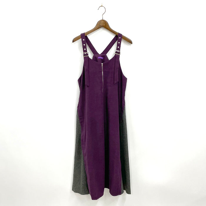 両サイドを異素材で切り替えた、配色使いがポイントのジャンパースカートです。