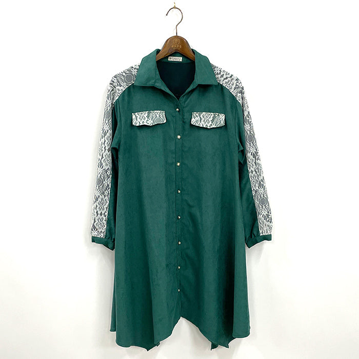 繊細なレース生地を組み合わせた、フェミニンカジュアルなチュニックです。