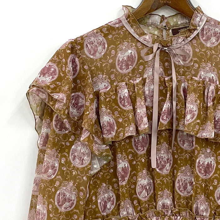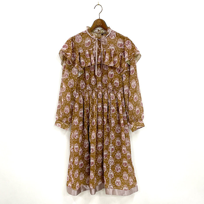 繊細なタッチで描かれた絵画に、アンティークなフレームデザインを組み合わせたオリジナル柄のワンピースです。
