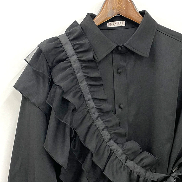 フレアスリーブがモードなロングシャツにトレンドの付け襟をセットにしたアイテム。シャツは羽織やミニワンピースとしての着用もおすすめです◎。