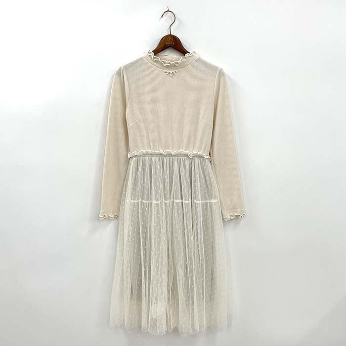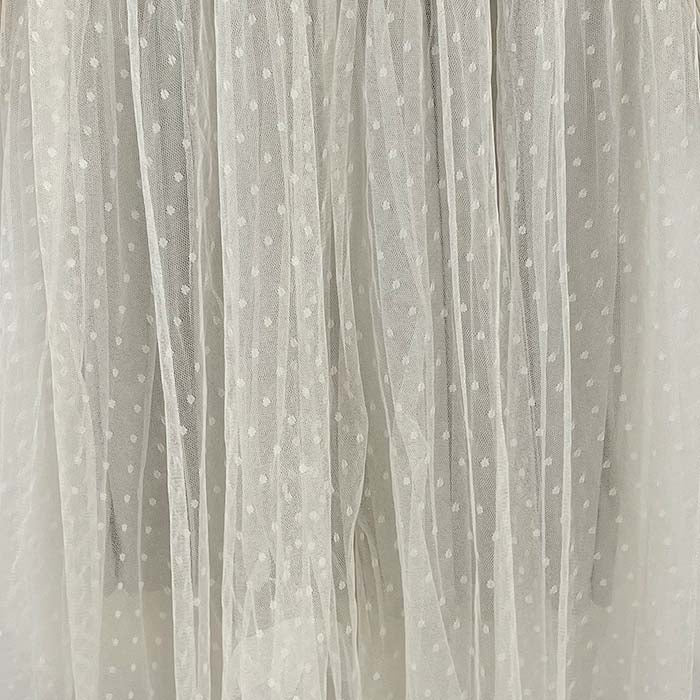 リブカットソーのトップスとドットチュールスカートがドッキング♪