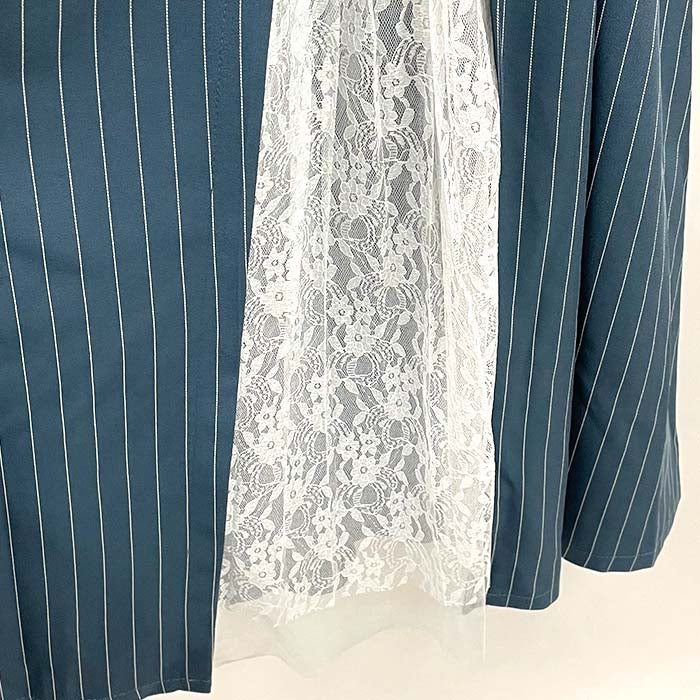 レースの切り替えとフロントファスナーのデザインが甘辛ミックスなワンピースです。トップス次第でカジュアルにもフェミニンにも使える着回し力抜群なアイテム。